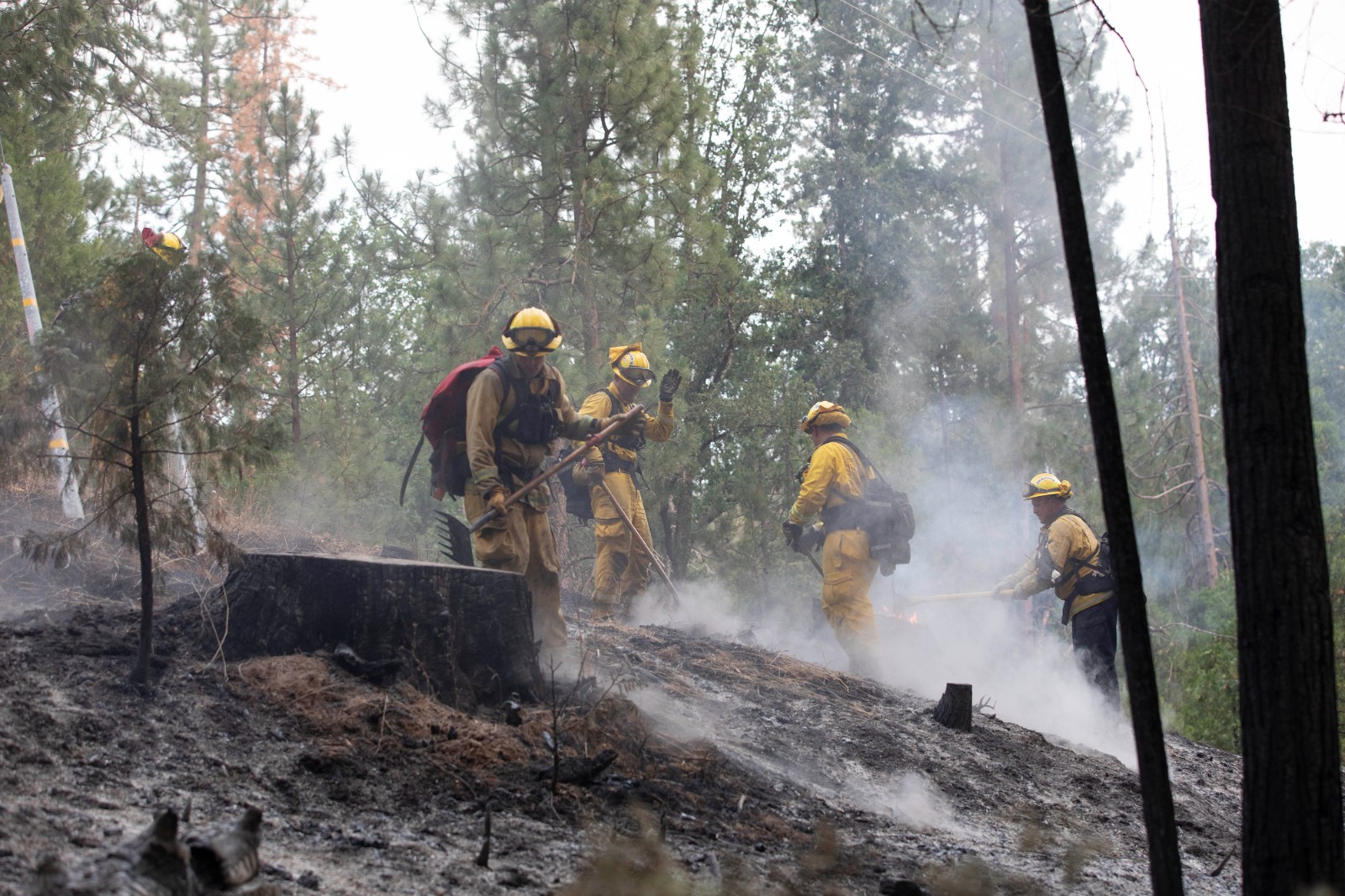 7月25日,消防員在美國(guó)加利福尼亞州馬里波薩縣參與滅火。