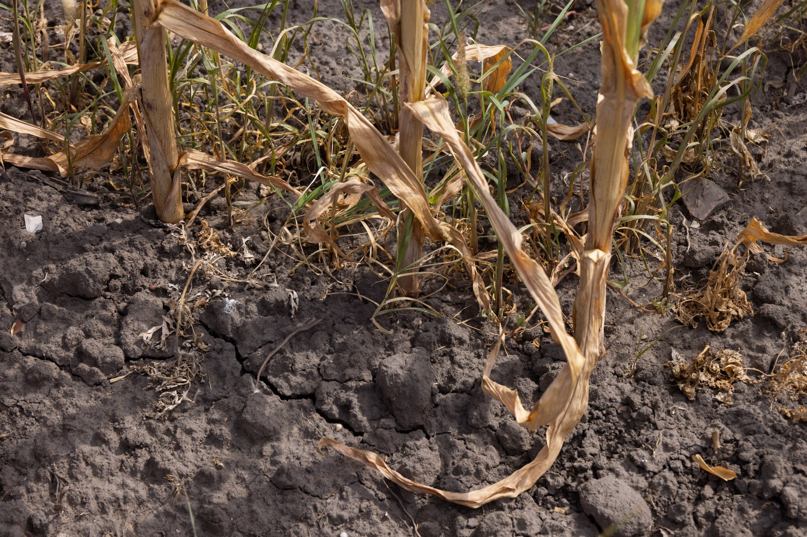 這是7月27日在匈牙利塞格德附近拍攝的遭受旱災的玉米田。
