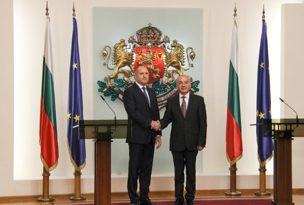 8月2日,在保加利亞索非亞,總統(tǒng)拉德夫(左)和新任命的看守內(nèi)閣總理加拉布·多涅夫(右)在看守內(nèi)閣就職典禮上握手。