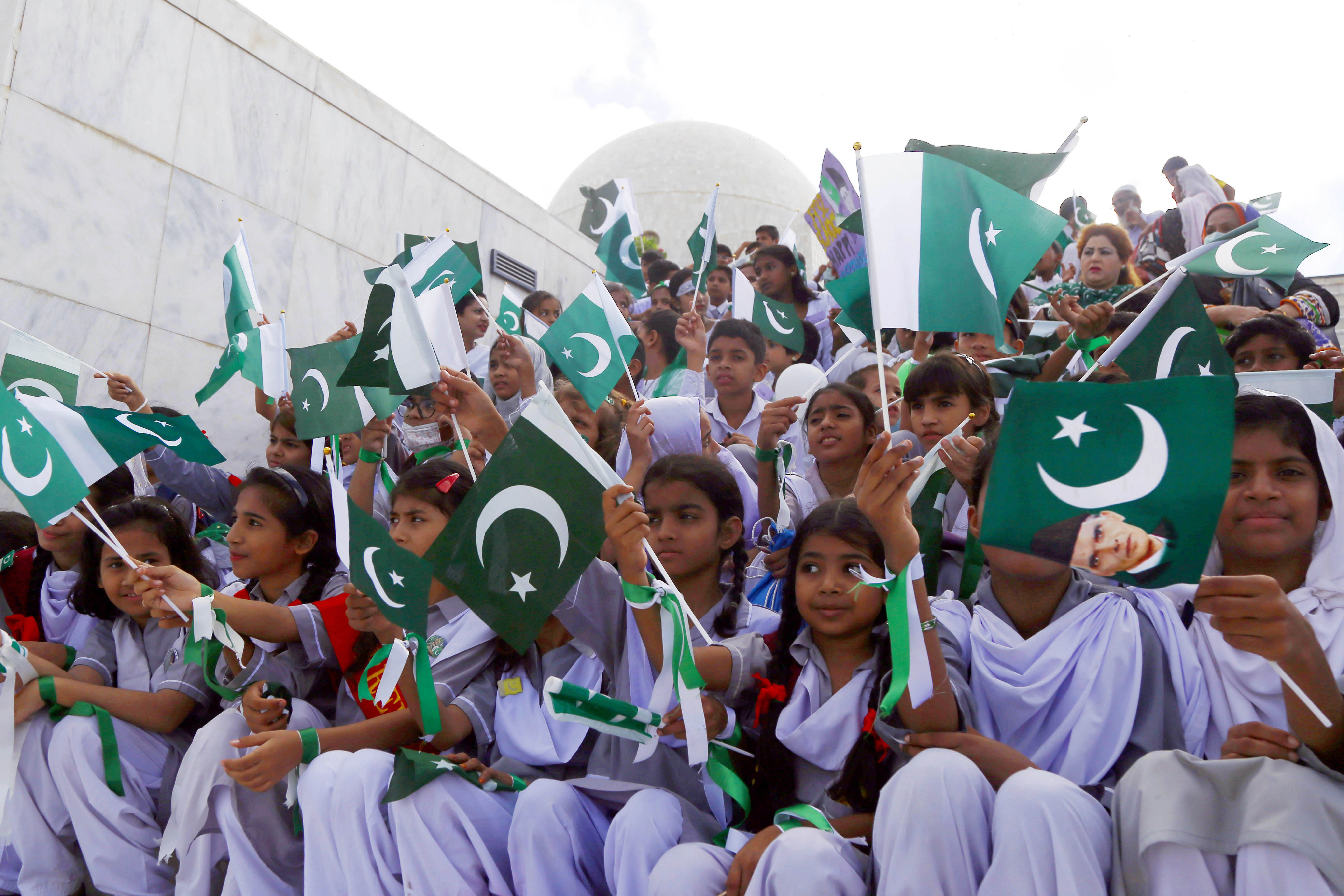 8月14日,學生在巴基斯坦卡拉奇參加獨立日慶?;顒?。