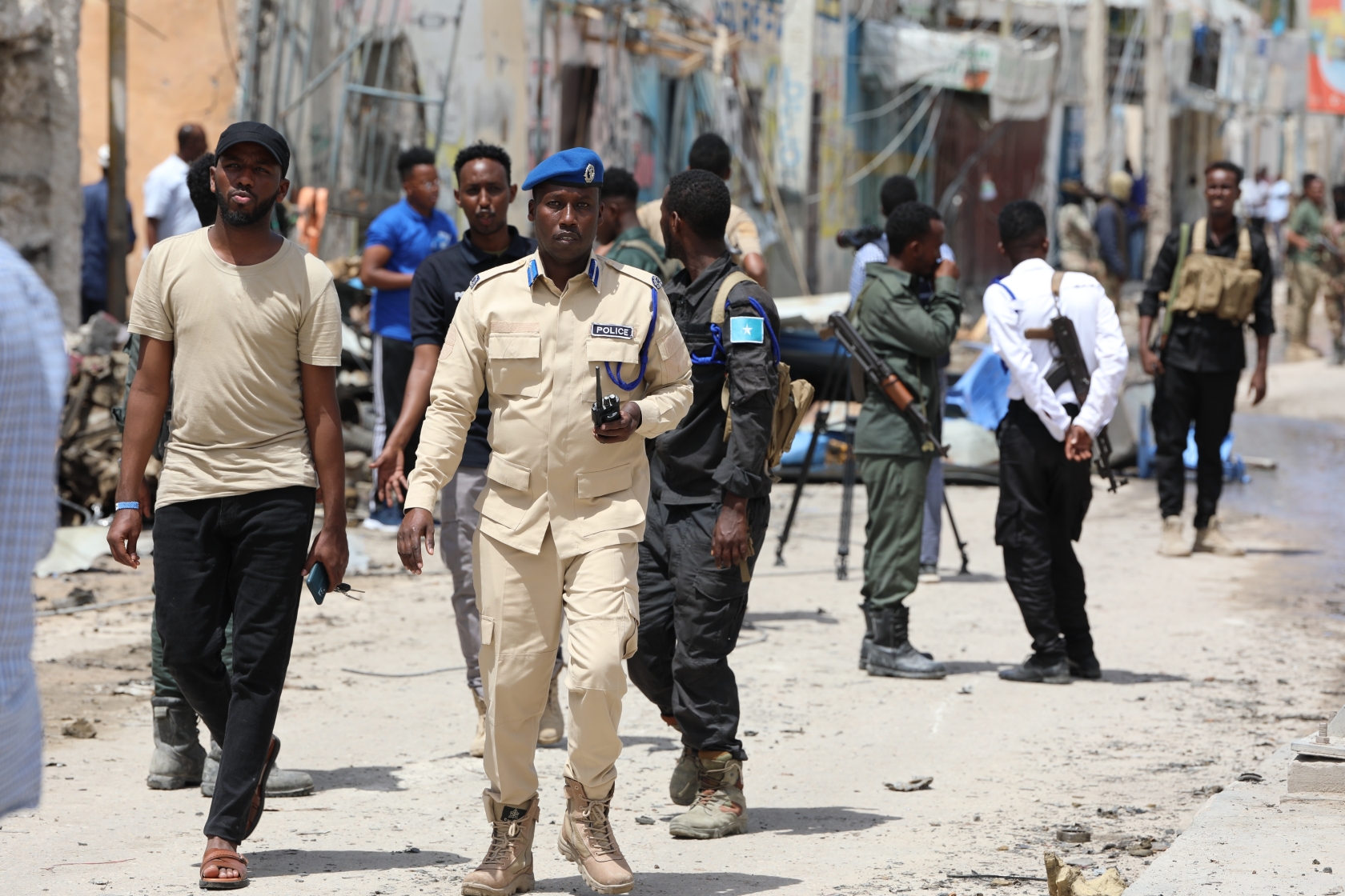 8月21日,警察在索馬里摩加迪沙遇襲酒店附近警戒。