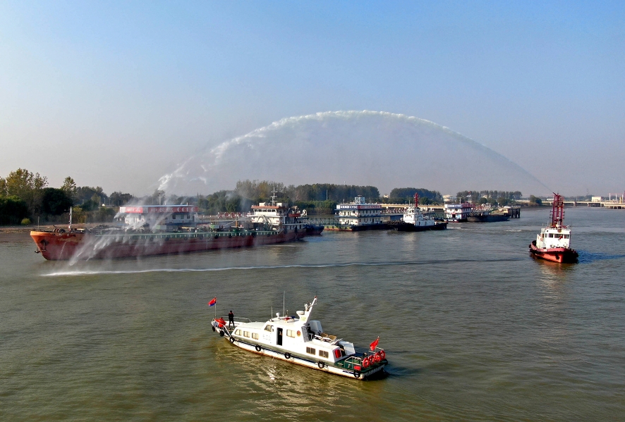 11月8日,長(zhǎng)江航運(yùn)公安局鎮(zhèn)江分局民警聯(lián)合中長(zhǎng)燃鎮(zhèn)江分公司高橋加油站開展“抓消防安全,保高質(zhì)量發(fā)展”主題應(yīng)急演練,為船舶安全航行、水上企業(yè)安全生產(chǎn)保駕護(hù)航。