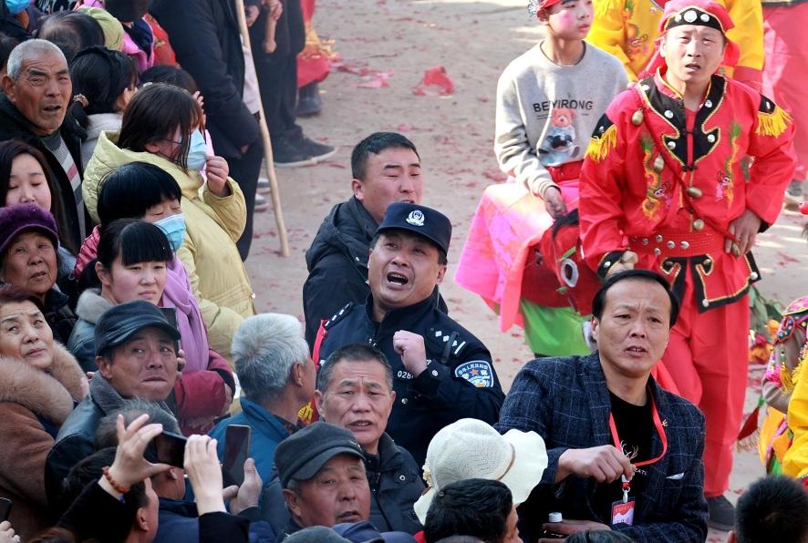 2月4日,陜西大荔縣公安局多警聯(lián)動,值守在傳統(tǒng)社火表演現(xiàn)場。