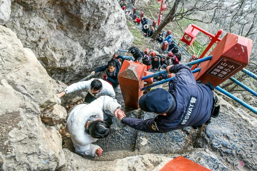 2月5日,安徽省和縣雞籠山迎來一年一度的傳統(tǒng)廟會祈?;顒?。為保障群眾出行安全,和縣公安局組織警力于凌晨4時到崗,對傍山險路進(jìn)行疏導(dǎo),保障群眾登山安全。