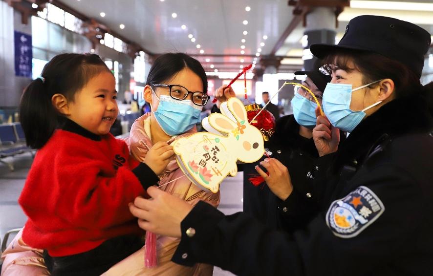 2月5日,元宵佳節(jié),杭州鐵路公安處臺州站派出所溫嶺警務(wù)室的民警在候車大廳為小朋友送上元宵節(jié)禮物。