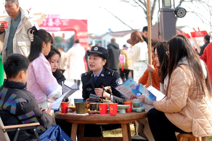 2月4日,江蘇省宜興市公安局反詐中心聯(lián)合新街派出所在潼渚元宵花燈喜樂會上采用“圍爐煮茶”形式開展反詐宣傳。