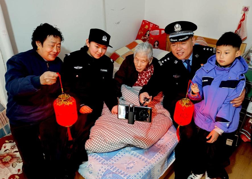 2月5日,山東省棗莊市公安局嶧城分局壇山派出所民警來到轄區(qū)立新社區(qū),看望外出務(wù)工人員留守老人和子女,并通過視頻通話的方式幫助他們與親人團(tuán)圓過節(jié)。