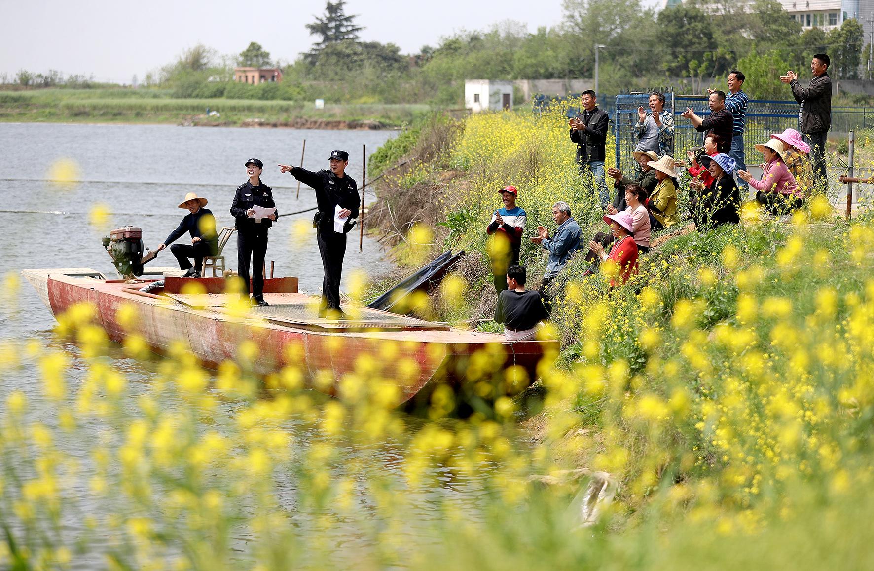 4月10日,在湖北省沙洋縣長湖濕地自然保護(hù)區(qū)后港水域,沙洋縣公安局后港水陸派出所民警以“法治講堂”形式,向沿岸村民開展生態(tài)保護(hù)普法宣講。