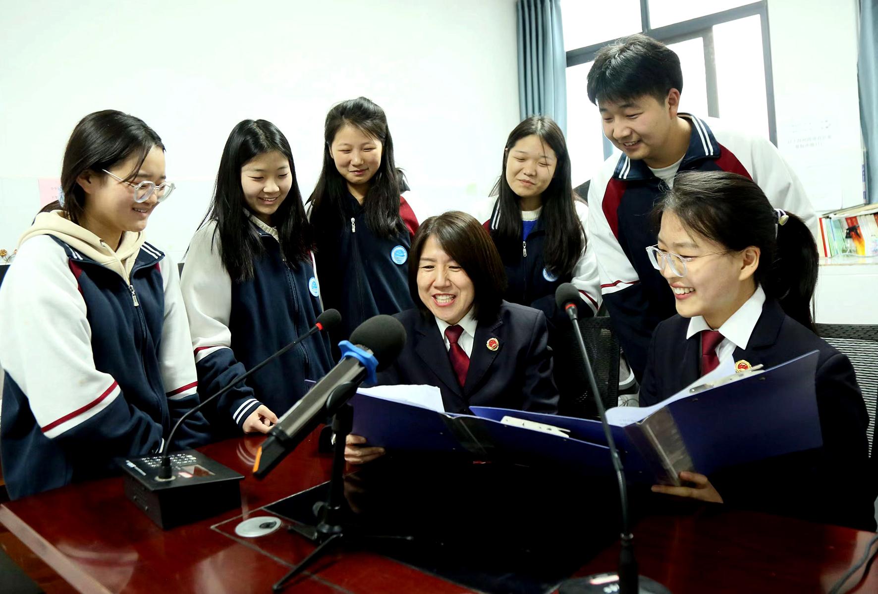 4月24日,河南省汝陽縣人民檢察院檢察官與汝陽縣中等專業(yè)學(xué)校廣播站播音員共同商討辦好普法專欄。