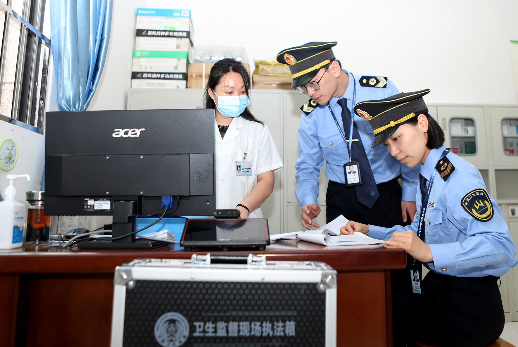 6月5日,安徽省阜南縣衛(wèi)生執(zhí)法人員對高考生入住賓館進(jìn)行監(jiān)督檢查。