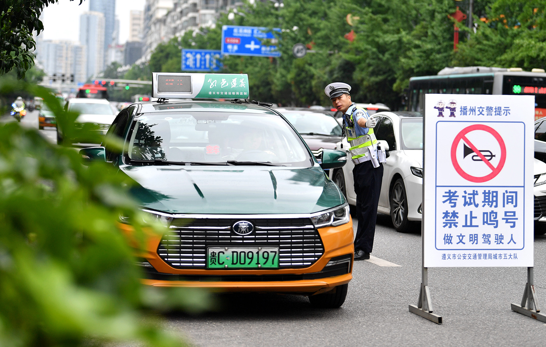 6月7日,貴州省遵義市公安局民警在各考點(diǎn)開展治安巡邏值守、交通秩序維護(hù)、為考生提供服務(wù),全力以赴保駕護(hù)航。