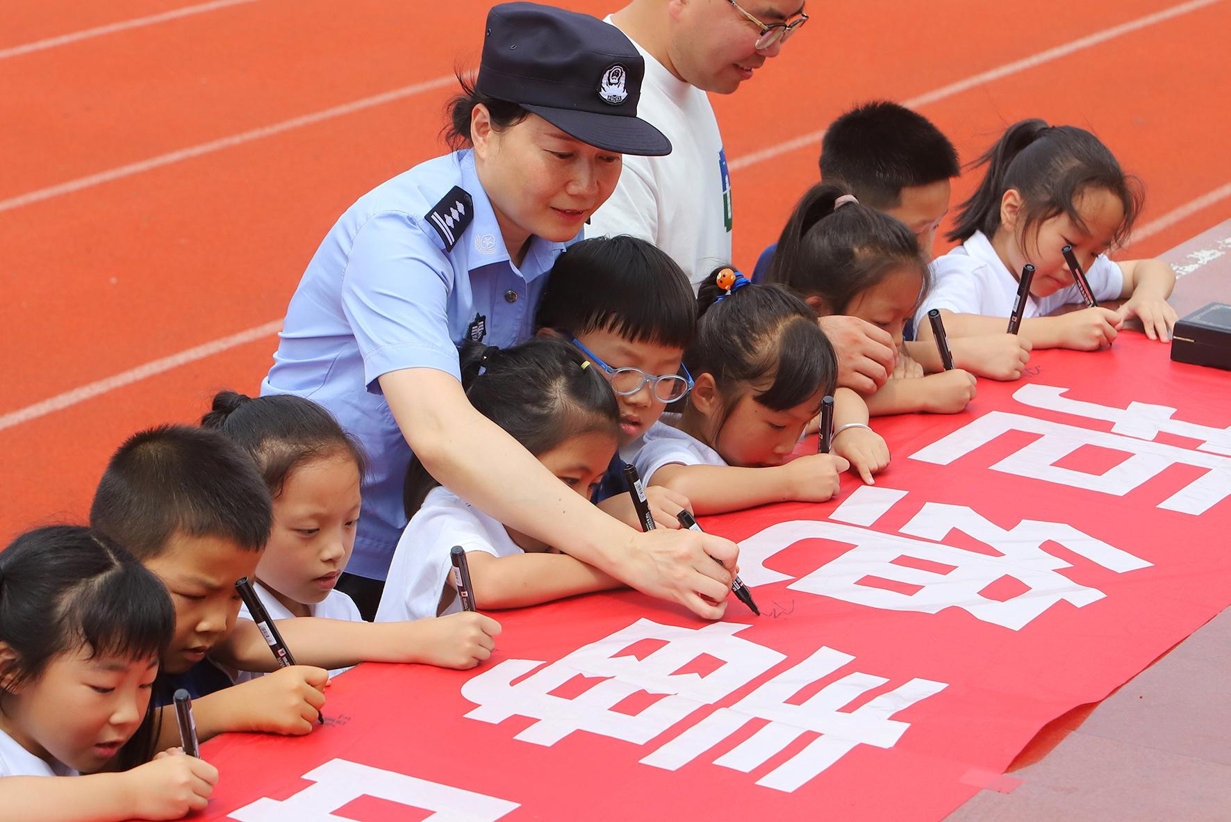 6月25日,浙江省臺州市公安局路南派出所民警走進(jìn)路南小學(xué),通過觀看禁毒展板、講述禁毒故事、“拒絕毒品”橫幅簽字等形式,對學(xué)生進(jìn)行禁毒教育。