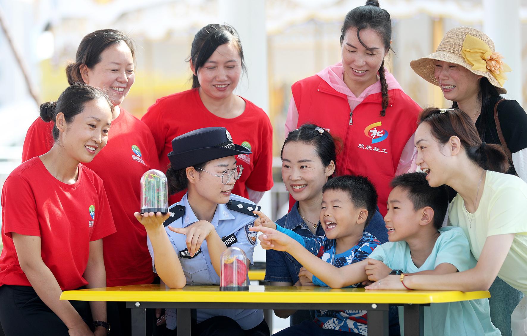 6月24日,湖北省沙洋縣公安局民警在農(nóng)建社區(qū),與居民進(jìn)行“識毒小能手”禁毒互動游戲。“6·26”來臨之際,沙洋縣公安局通過開展“禁毒宣傳進(jìn)萬家”活動,將禁毒知識送進(jìn)每個家庭,全面提升群眾識毒、防毒、拒毒意識和能力。
