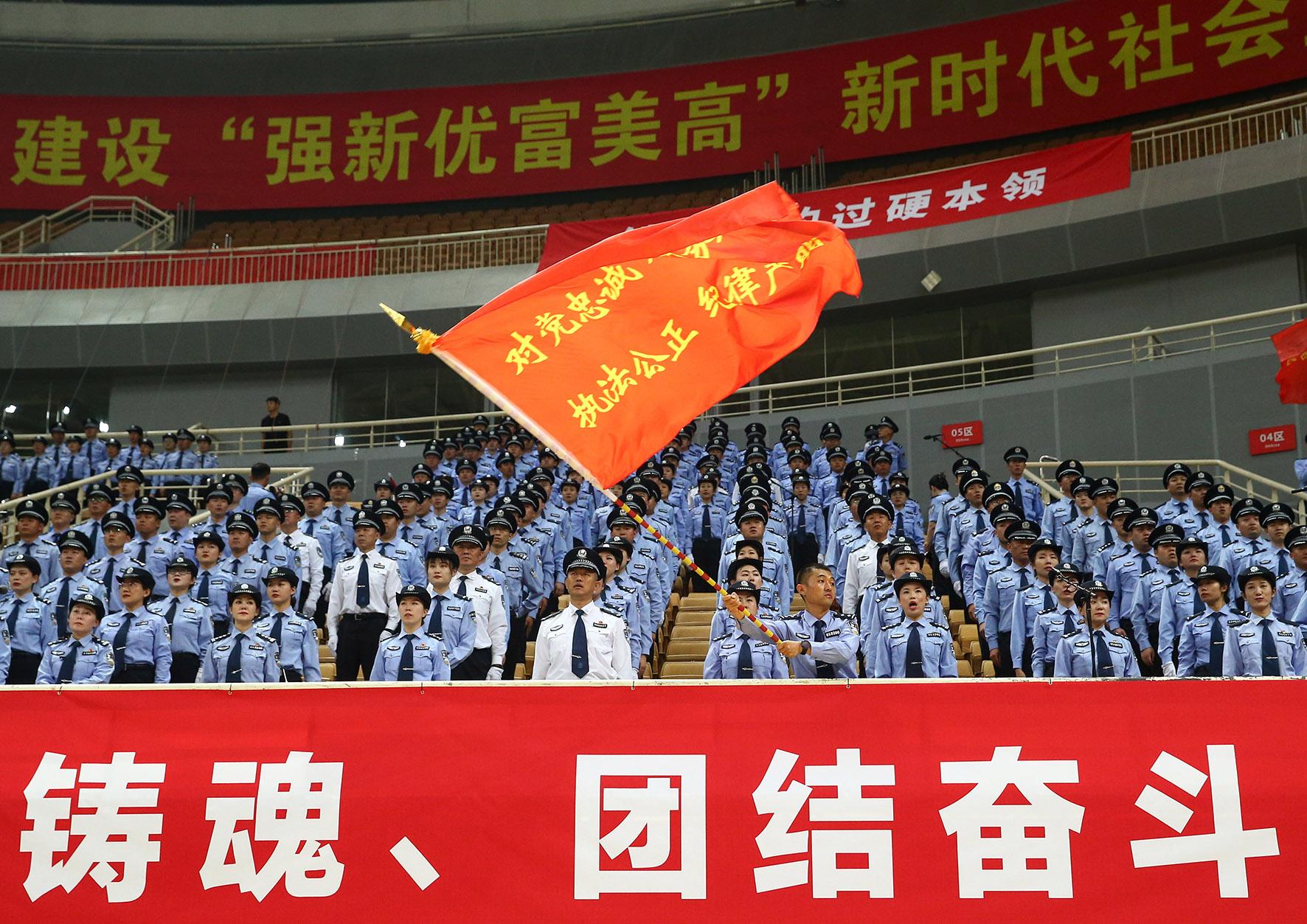 6月30日晚,山東省濟(jì)南市公安局在奧體中心東荷體育館舉辦“公安心向黨·放歌新時代”公安機(jī)關(guān)慶“七一”合唱比賽,唱出“警營好聲音”,弘揚(yáng)“公安正能量”。
