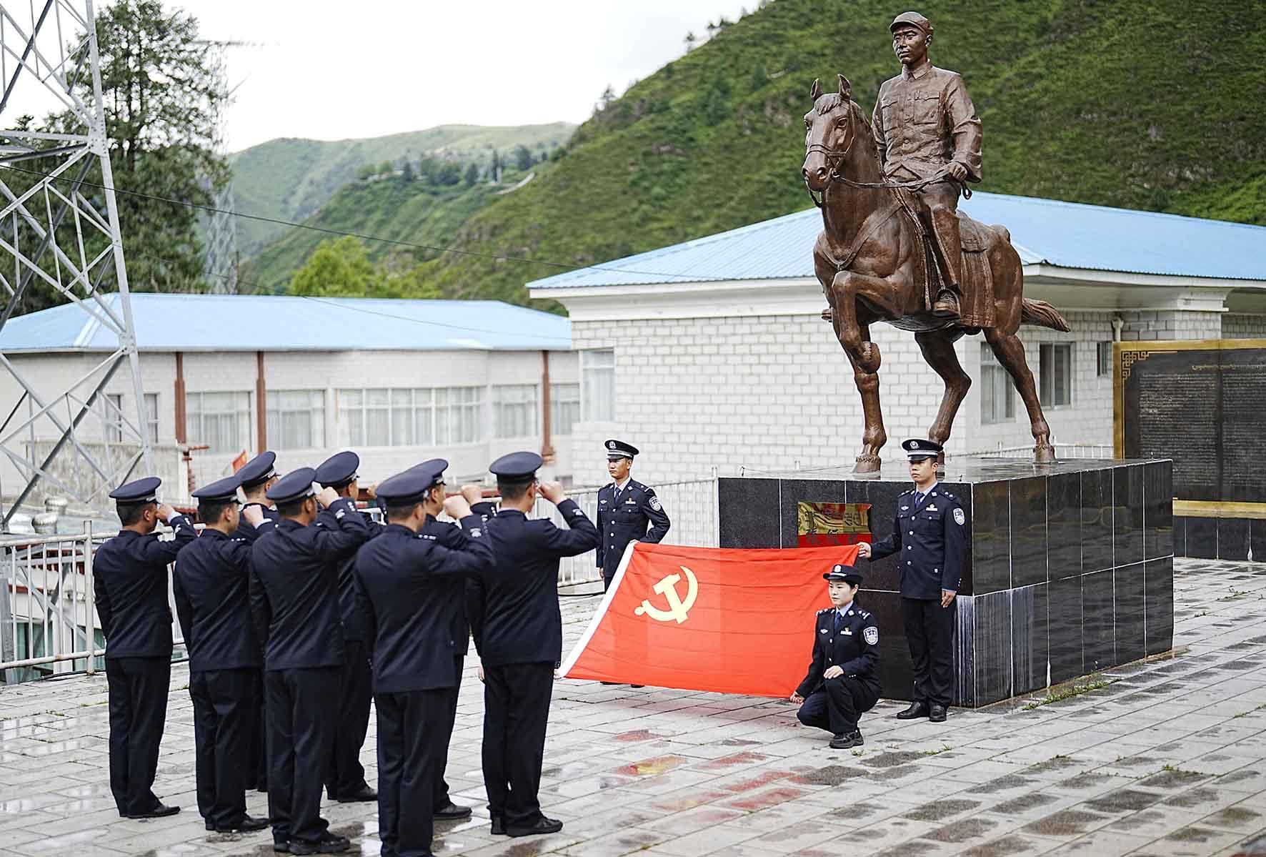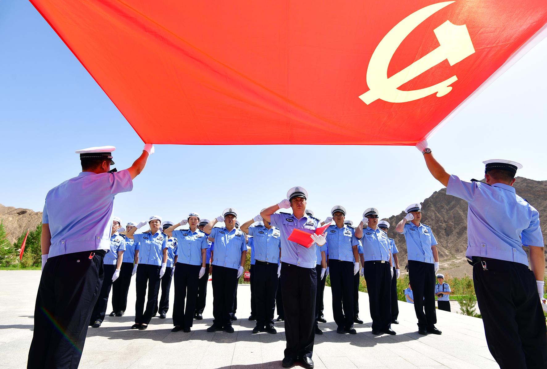 6月29日,甘肅省臨澤縣公安局交警大隊組織民輔警前往中國工農(nóng)紅軍西路軍梨園口戰(zhàn)斗遺址重溫入黨誓詞,緬懷革命先烈,傳承西路軍精神。