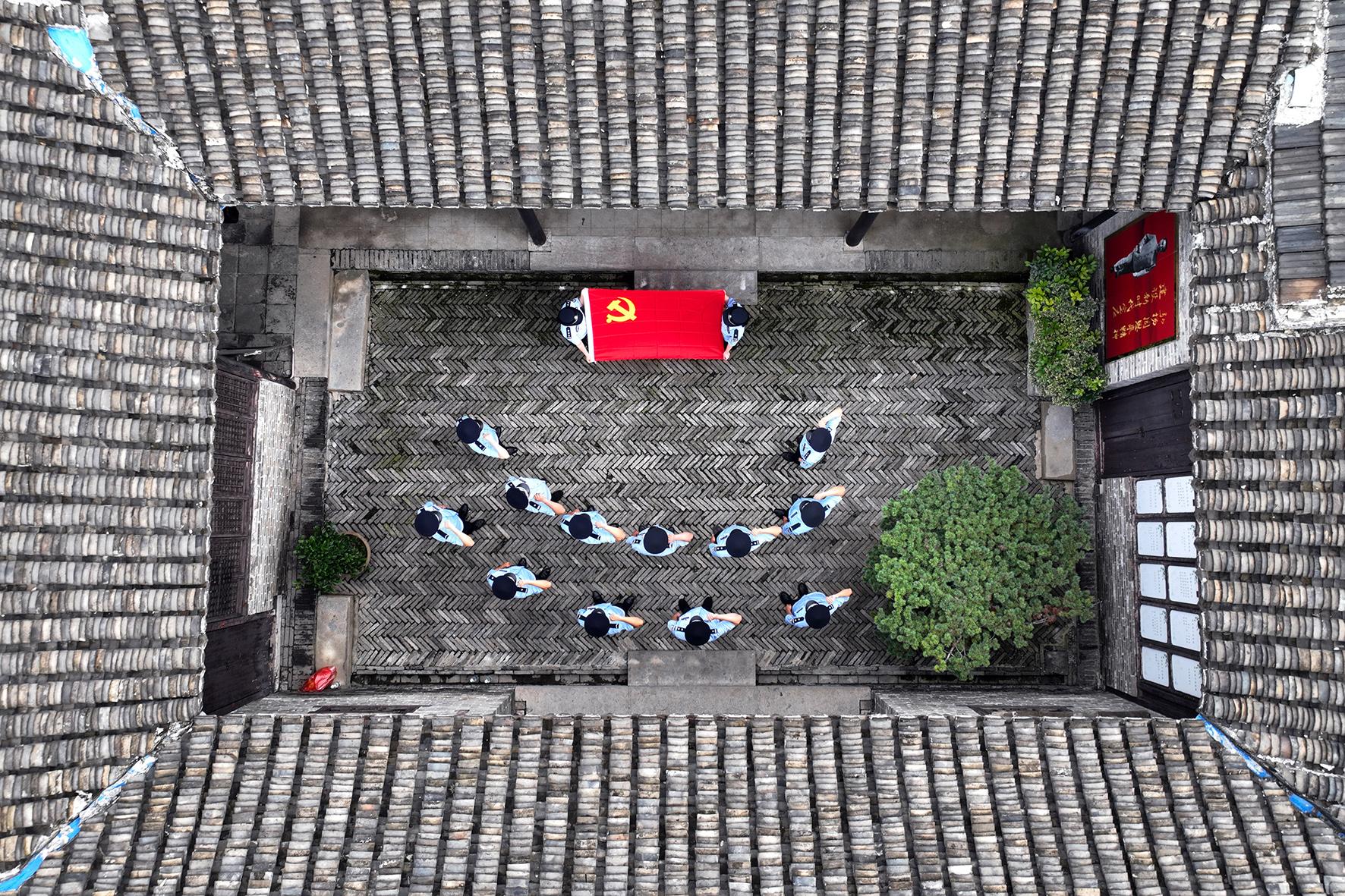 6月30日, 江蘇省揚(yáng)州市寶應(yīng)縣公安局城北派出所黨員民警在周恩來少年時期讀書處重溫入黨誓詞,激勵廣大黨員民警不忘初心、牢記使命,傳承革命精神,鍛造忠誠警魂。