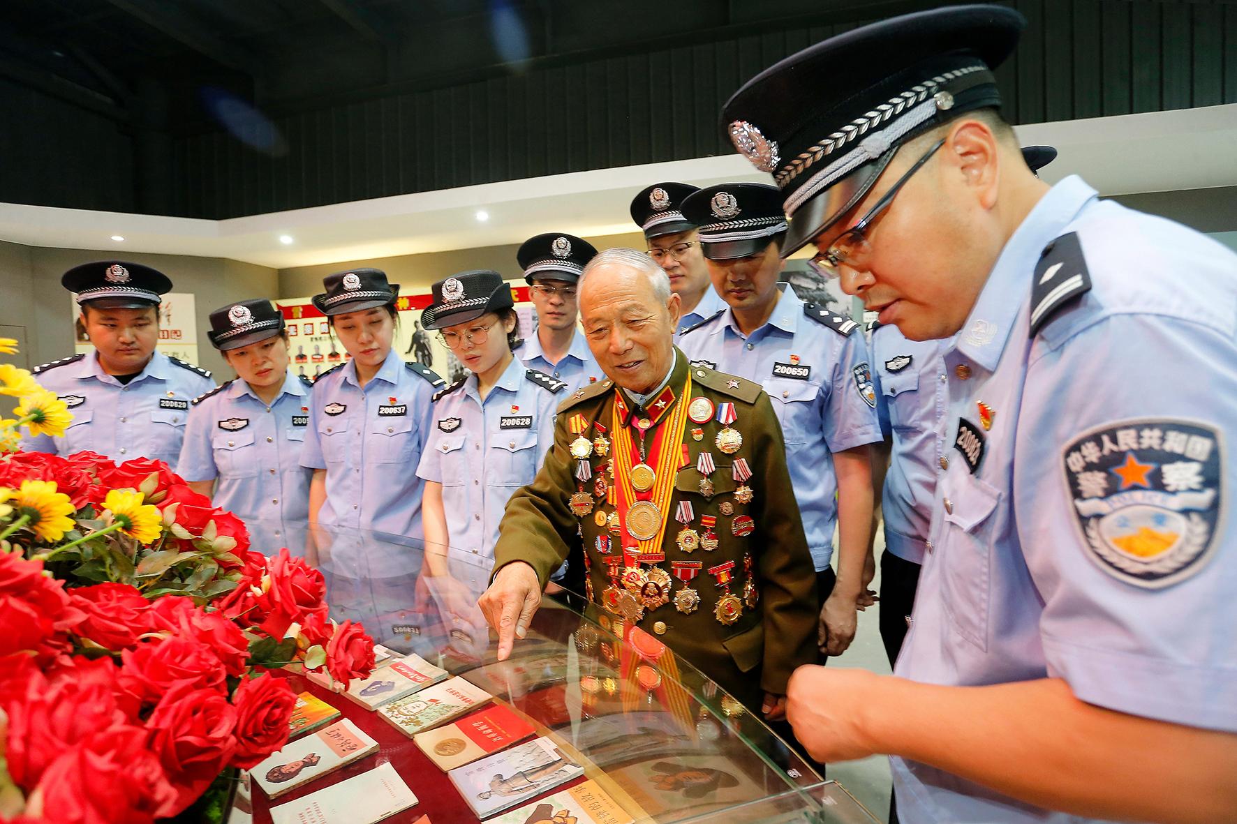 圖為雷鋒生前戰(zhàn)友、學(xué)雷鋒標(biāo)兵趙明才向民警講述雷鋒生平事跡。