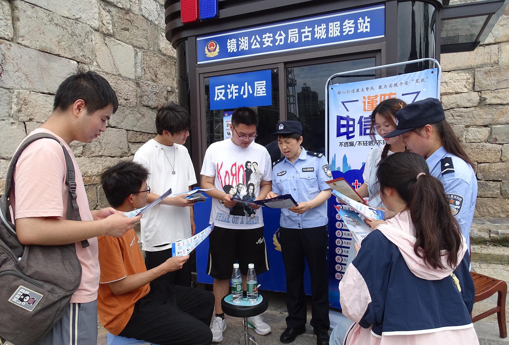為進(jìn)一步提高群眾防范網(wǎng)絡(luò)電信詐騙意識,延伸防范電詐觸角,7月6日,安徽省蕪湖市公安局鏡湖分局分局東門派出所創(chuàng)新反詐宣傳方式,在古城景區(qū)專門設(shè)置了一間“反詐小屋”,游客可以隨時(shí)領(lǐng)取宣傳單、掃反詐二維碼、觀看警示教育。