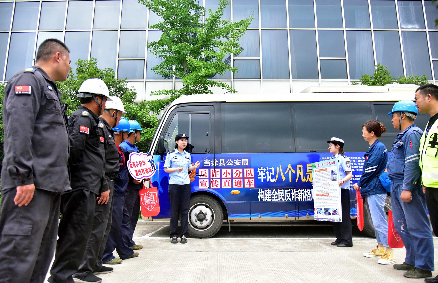 7月18日,安徽省當涂縣公安局反詐小分隊民警向企業(yè)員工開展反詐和交通安全宣傳。
