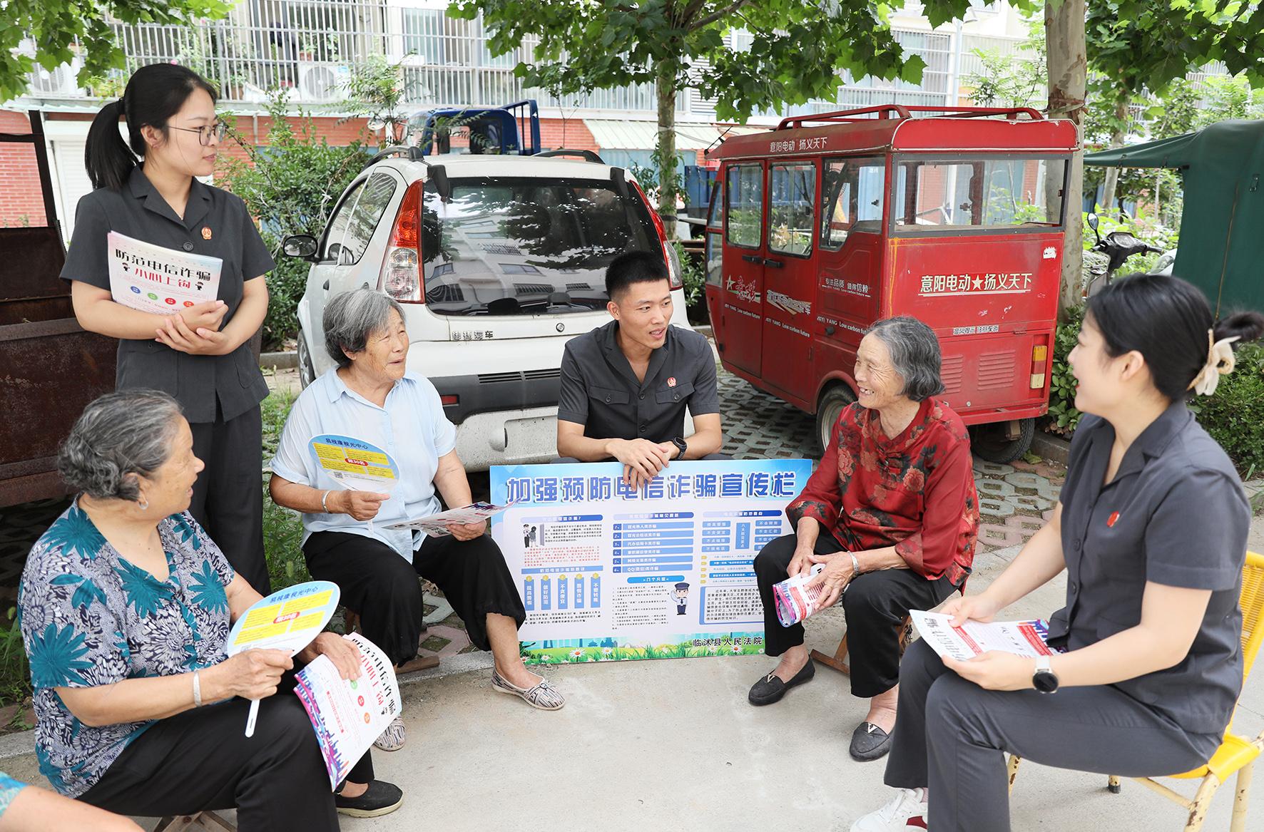 7月19日,山東省臨沭縣人民法院干警走進南溝頭社區(qū),開展防范電信網(wǎng)絡(luò)詐騙普法宣傳活動。