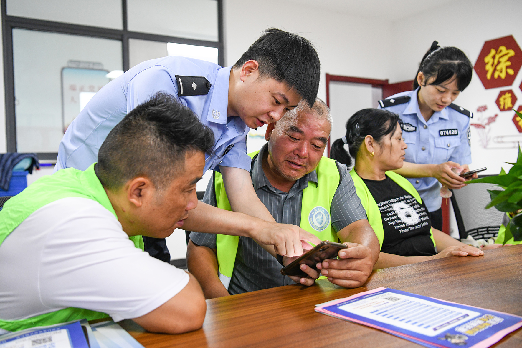 8月28日,在江蘇省如城街道顧莊社區(qū),社區(qū)民警正在向群眾普及文明上網(wǎng)以及防范網(wǎng)絡(luò)詐騙等知識(shí)。