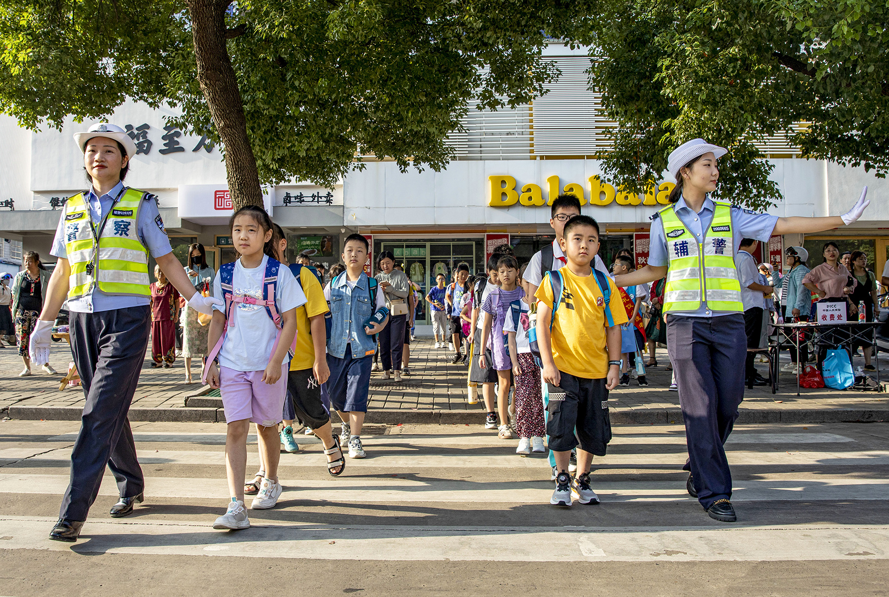 9月1日,安徽省合肥市廬江縣公安局交管大隊成立女子“護學崗”,護送孩子們平安進校園。