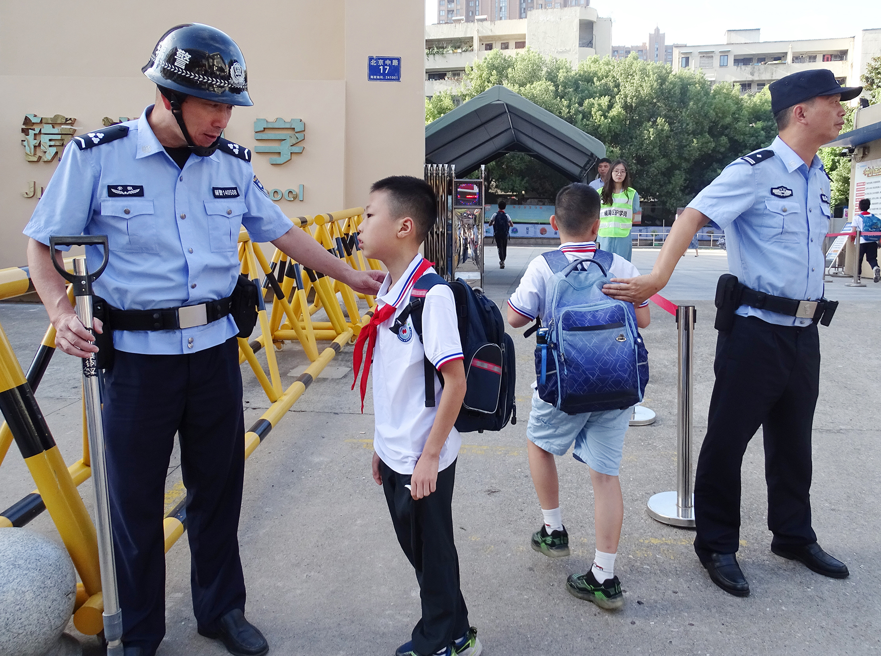 9月1日,安徽省蕪湖市公安局鏡湖分局提前部署,安排警力在轄區(qū)各學校、幼兒園門前執(zhí)勤,為師生撐起“安全傘”。