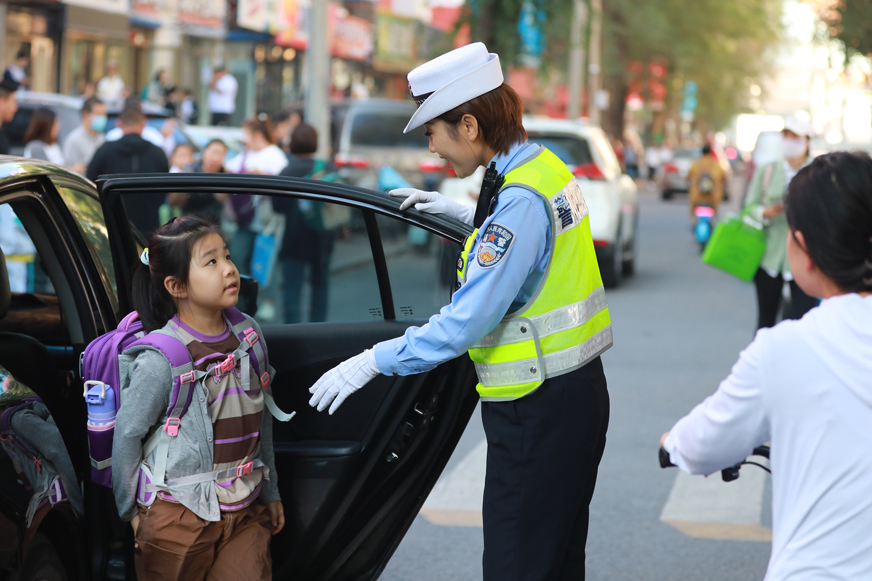 “孩子交給我,您安心去忙吧?!?月1日,湖北省武漢市公安局東西湖區(qū)分局長青街派出所護學崗民警,幫助家長將小朋友安全護送進學校。