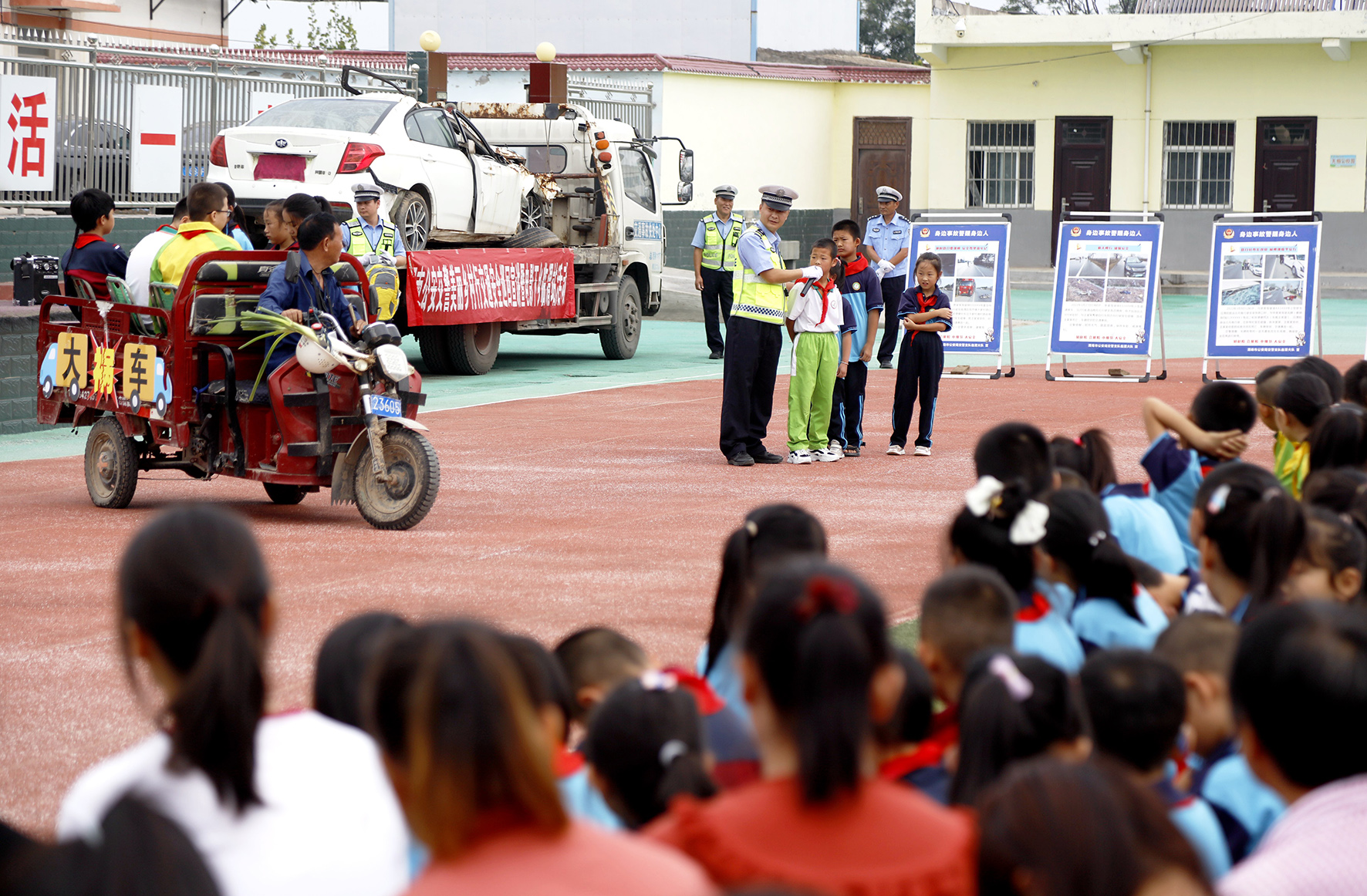 9月1日,陜西省渭南市公安局交警支隊臨渭大隊民警走進農(nóng)村小學開展“交通安全第一課”活動。