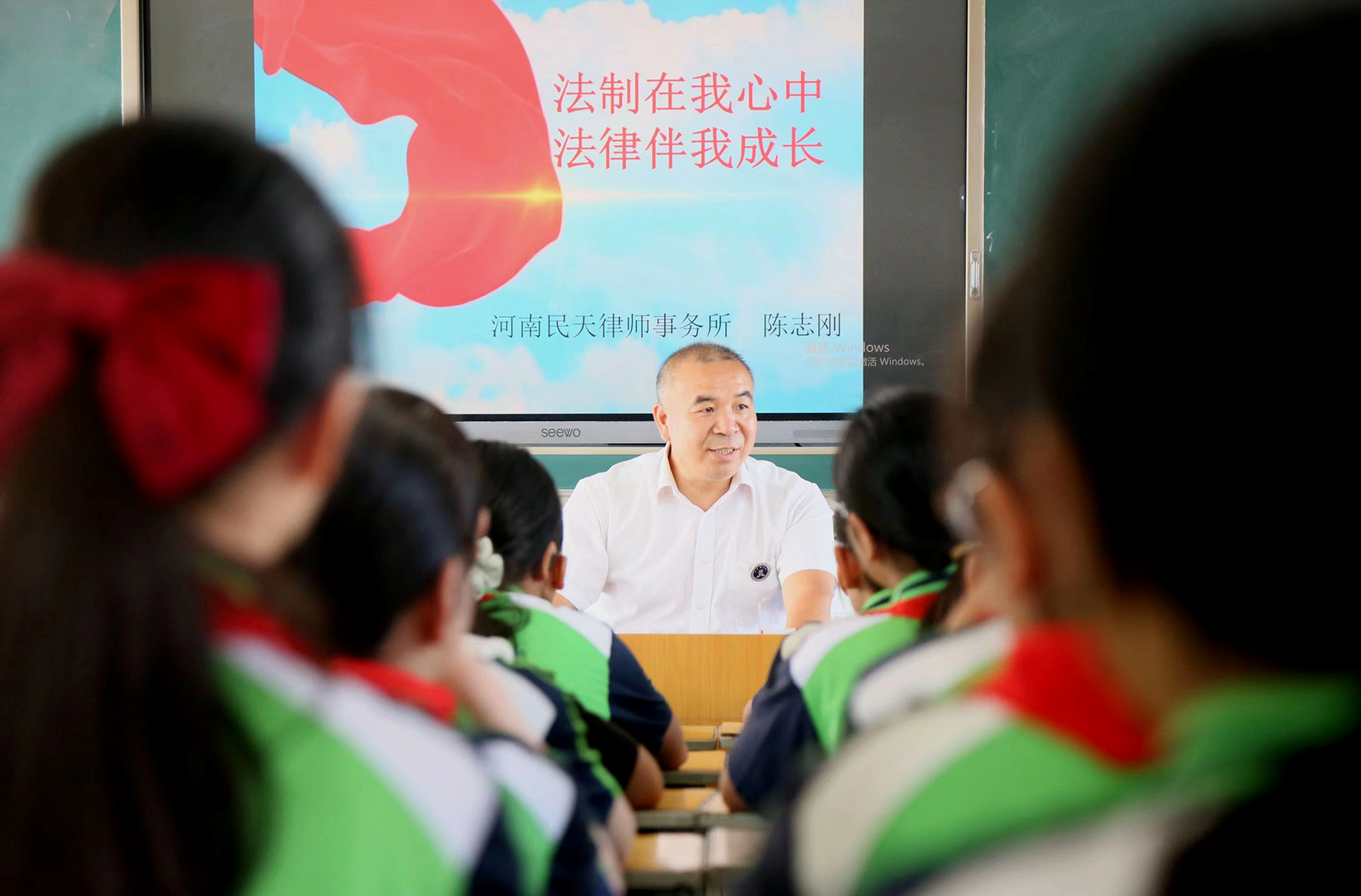 9月4日,河南省洛陽市汝陽縣人大代表、河南民天律師事務(wù)所律師陳志剛給汝陽縣第二實(shí)驗(yàn)小學(xué)的學(xué)生們上法律課,引導(dǎo)同學(xué)們運(yùn)用法律保護(hù)自己合法權(quán)益,確保不受侵害。