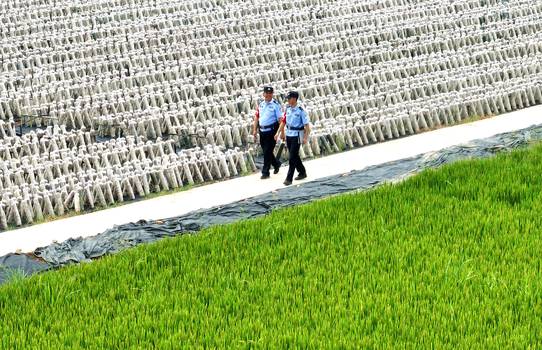 圖為民警在方畈村田間地頭巡邏守護。
