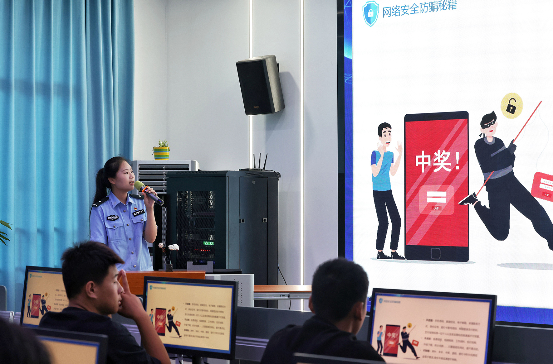 9月14日,安徽省舒城縣公安局城東派出所民警走進轄區(qū)舒城職業(yè)學校電教課堂,向同學們宣傳網(wǎng)絡安全知識。