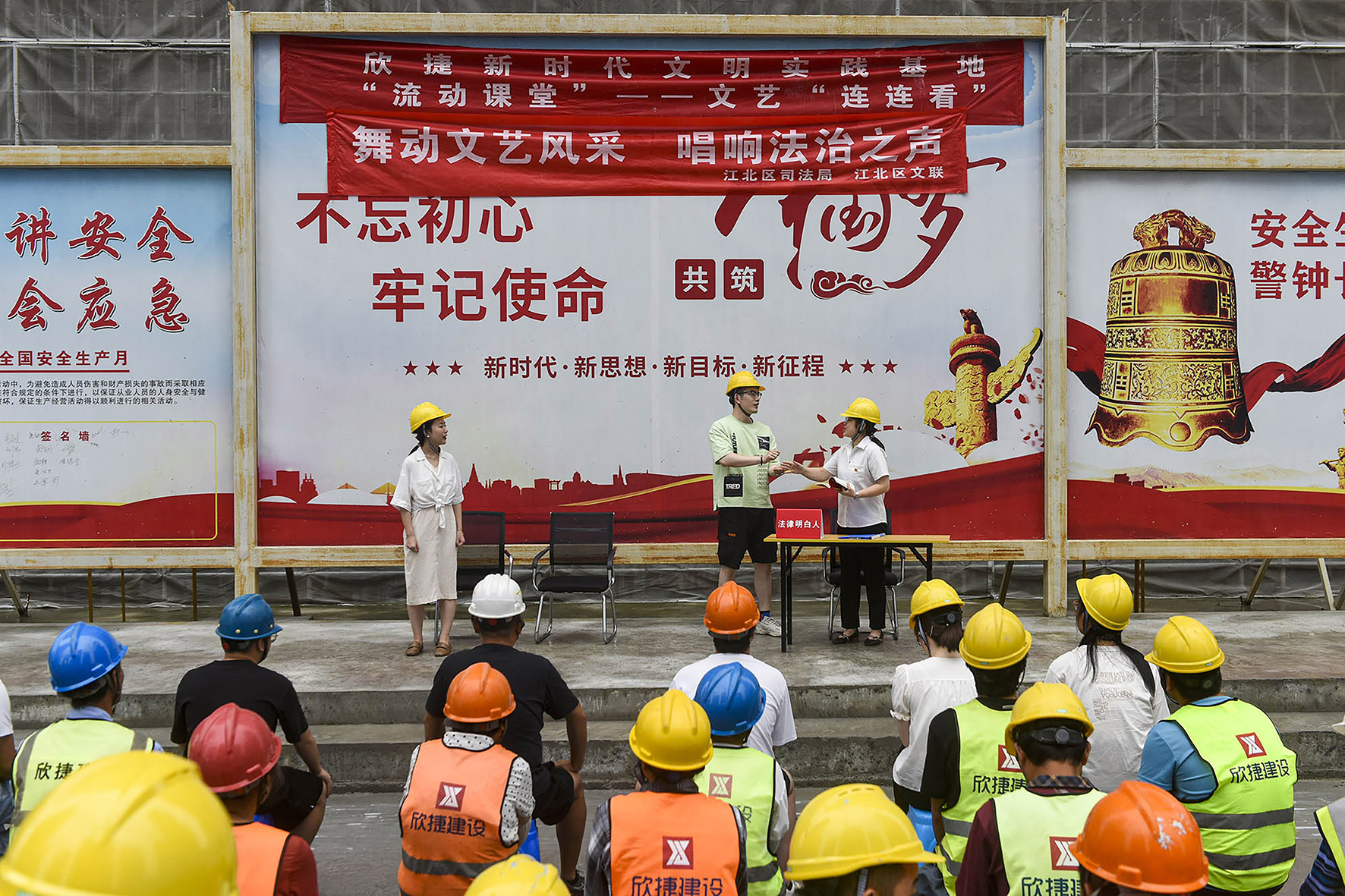 9月14日,浙江省寧波市住建系統(tǒng)組織文藝小分隊(duì)和司法工作者來到保障房項(xiàng)目工地,給建筑工人進(jìn)行普法宣傳。