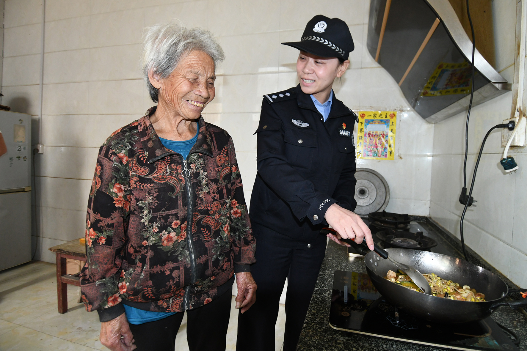 圖為12月19日,民警在余營村走訪76歲的獨居老人劉秀英。