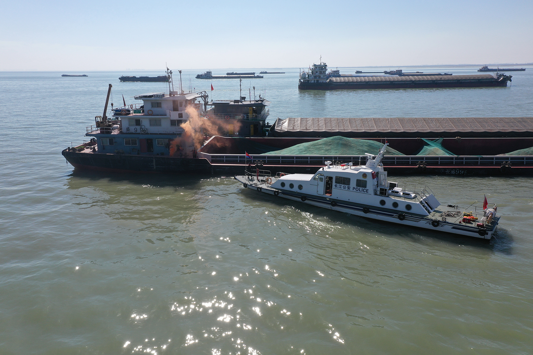 11月7日,長江航運(yùn)公安局南通分局開展消防救援綜合演練。