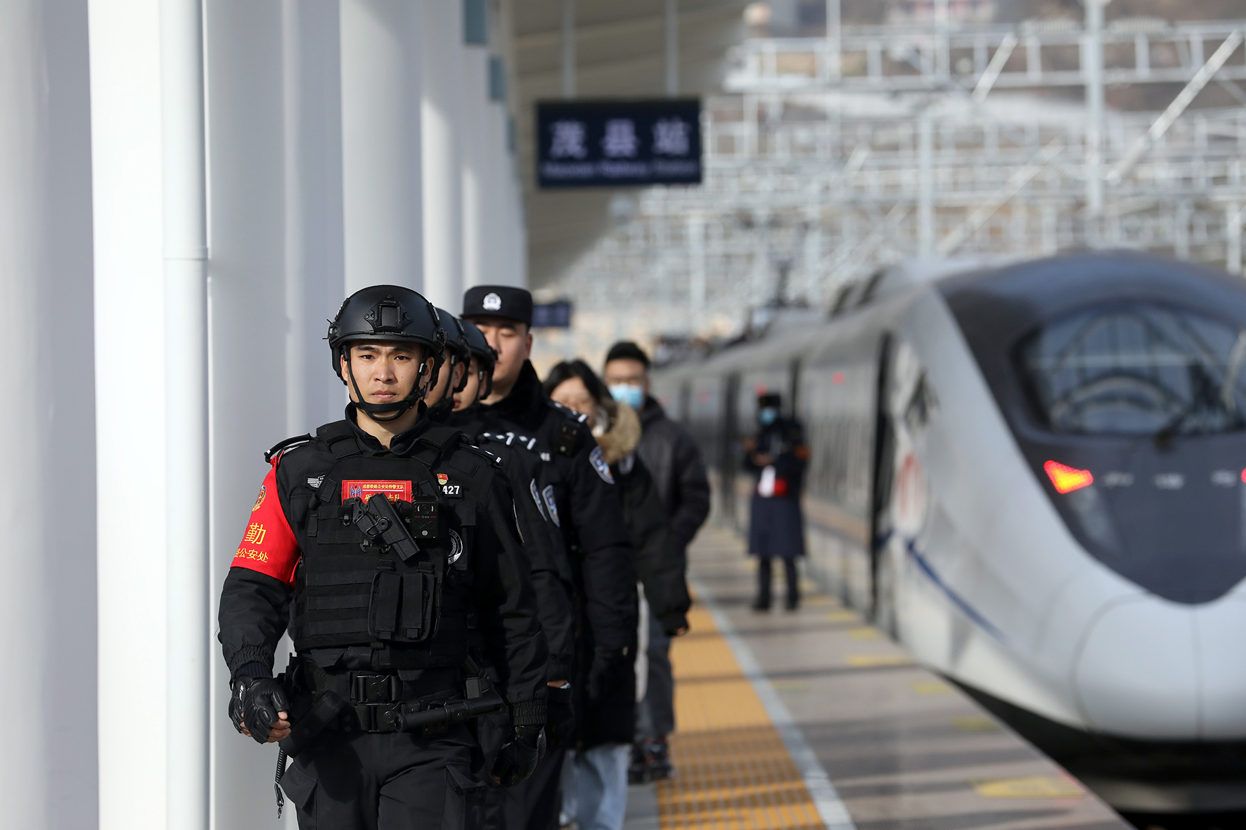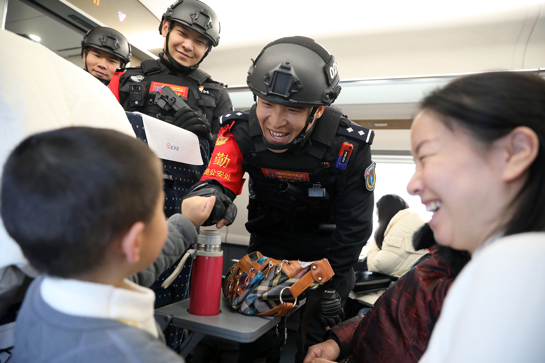 12月29日,在成都東開往茂縣的C6006次動(dòng)車組列車上,一隊(duì)警容嚴(yán)整、精神飽滿的特警隊(duì)員格外引人注目,他們是成都鐵路公安處特警支隊(duì)民警,為旅客安全出行護(hù)航。
