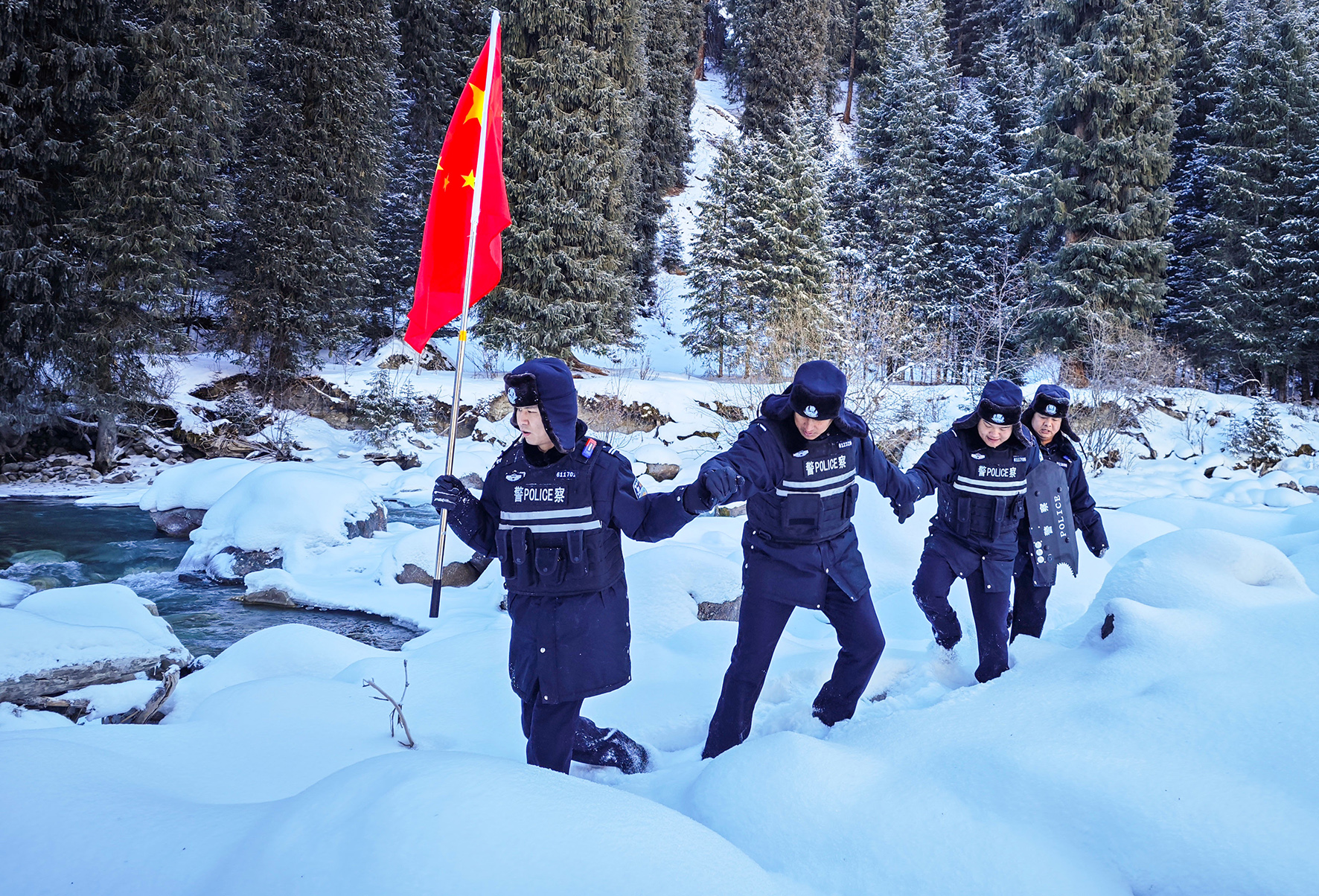 2023年12月29日,新疆出入境邊防檢查總站阿勒泰邊境管理支隊(duì)富蘊(yùn)邊境管理大隊(duì)庫衛(wèi)邊境派出所的民輔警對(duì)邊境重點(diǎn)區(qū)域進(jìn)行踏查。