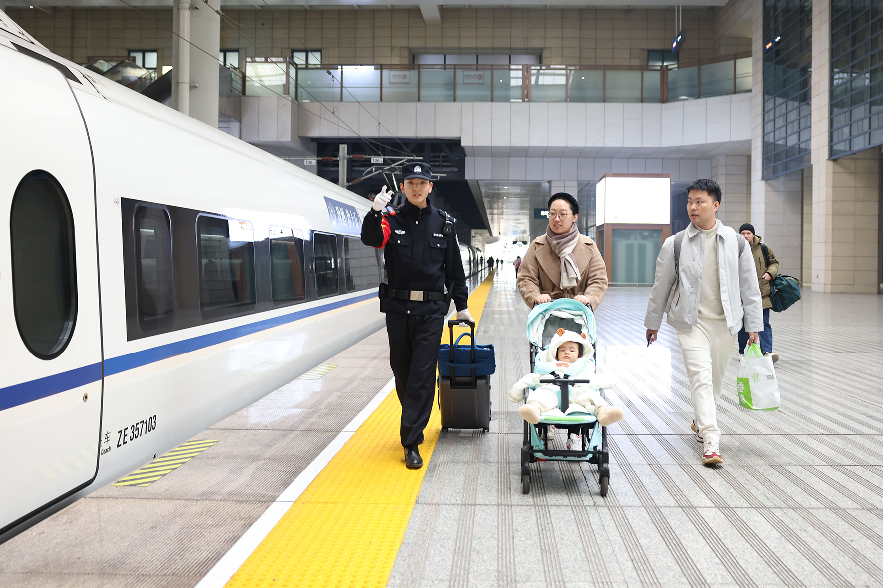 1月1日,西安站、西安北站迎來元旦小長(zhǎng)假返程客流高峰。西安鐵路公安局西安公安處在進(jìn)站口、候車室、站臺(tái)等客流密集部位增派警力,最大限度提升“見警率”“管事率”。