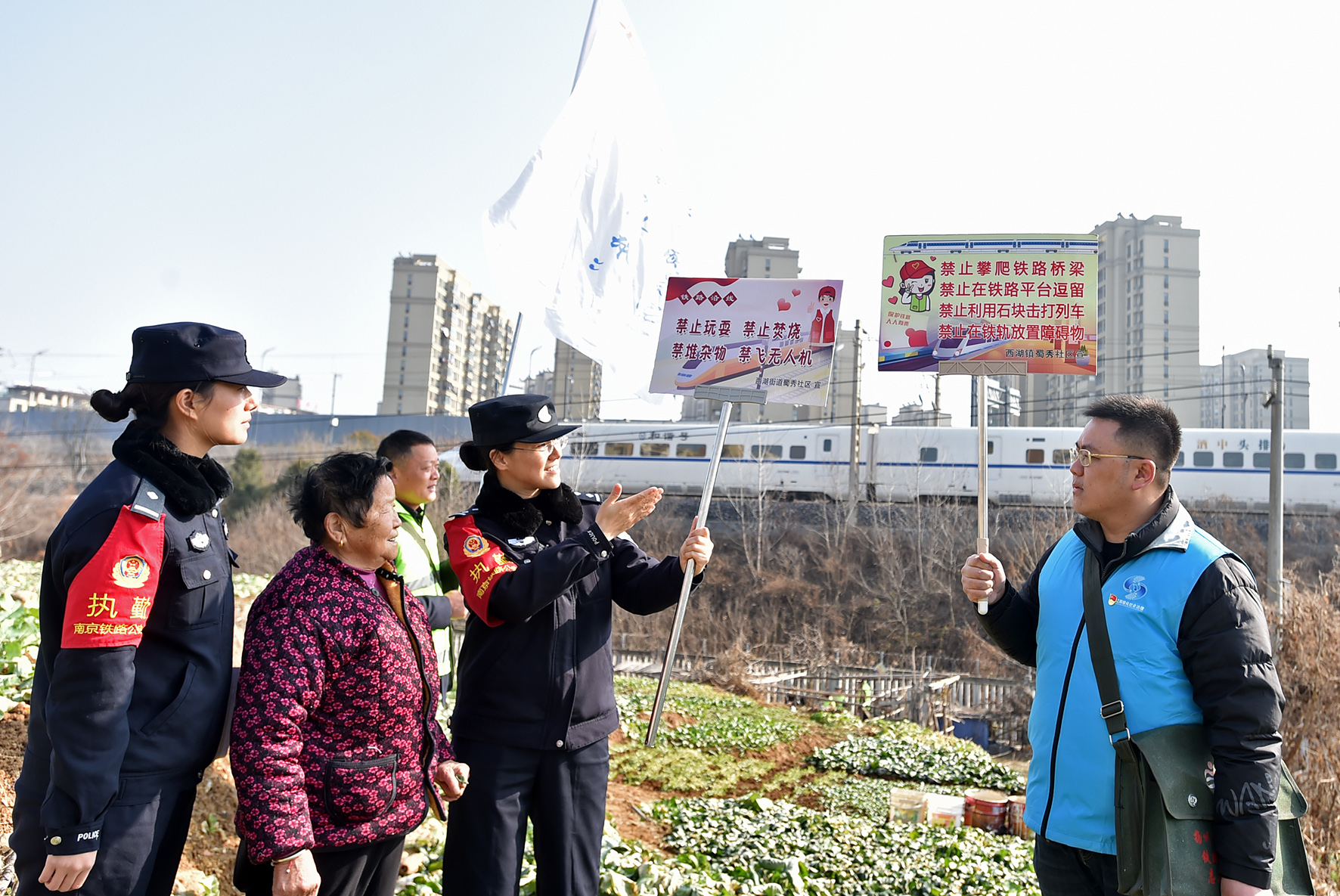 1月1日,一支由南京鐵路公安處揚(yáng)州站派出所民警和揚(yáng)州市邗江區(qū)西湖街道蜀秀社區(qū)網(wǎng)格員、退伍軍人、志愿者等組成的“蜀秀平安”鐵路護(hù)路聯(lián)防志愿巡防隊(duì)在鐵路沿線開展巡防宣教活動(dòng)。