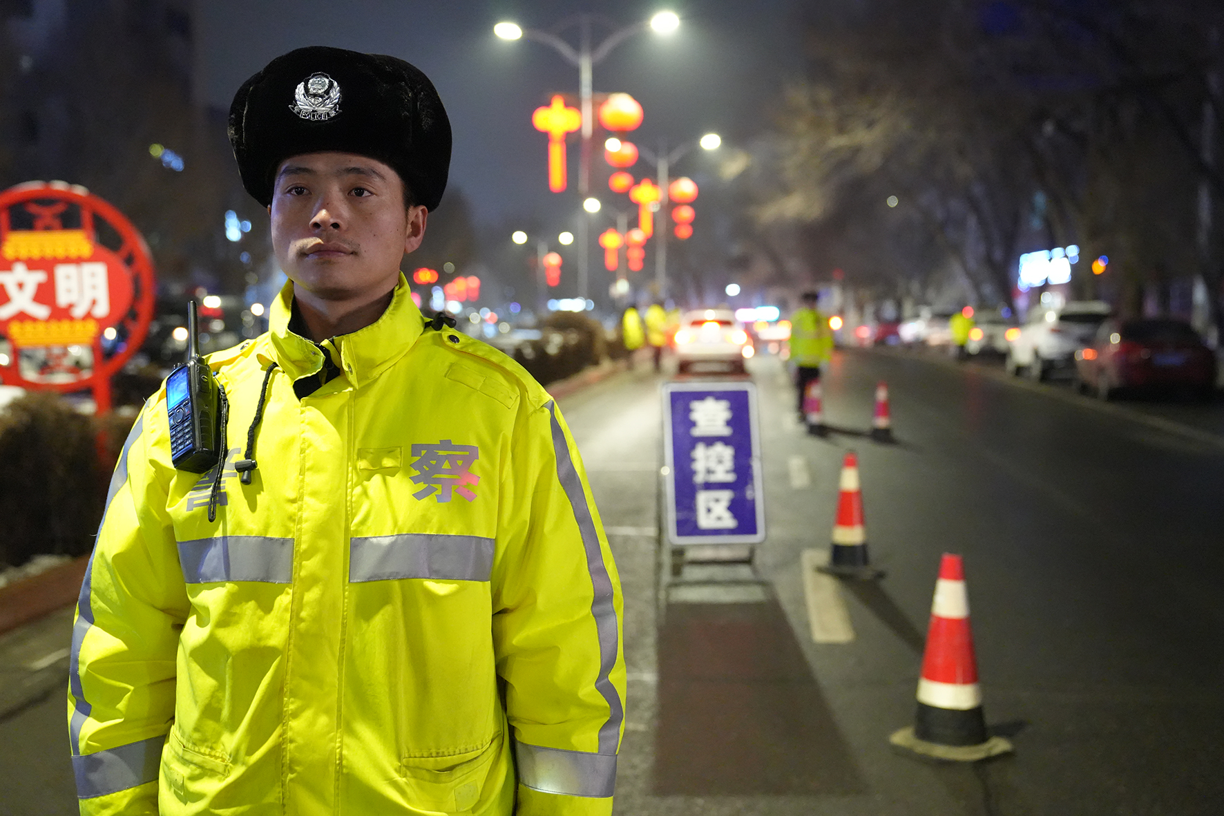 2023年12月31日晚,新疆克拉瑪依市公安局白堿灘區(qū)分局交警大隊(duì)民警在轄區(qū)三環(huán)路街道開展夜查,守護(hù)跨年夜平安。
