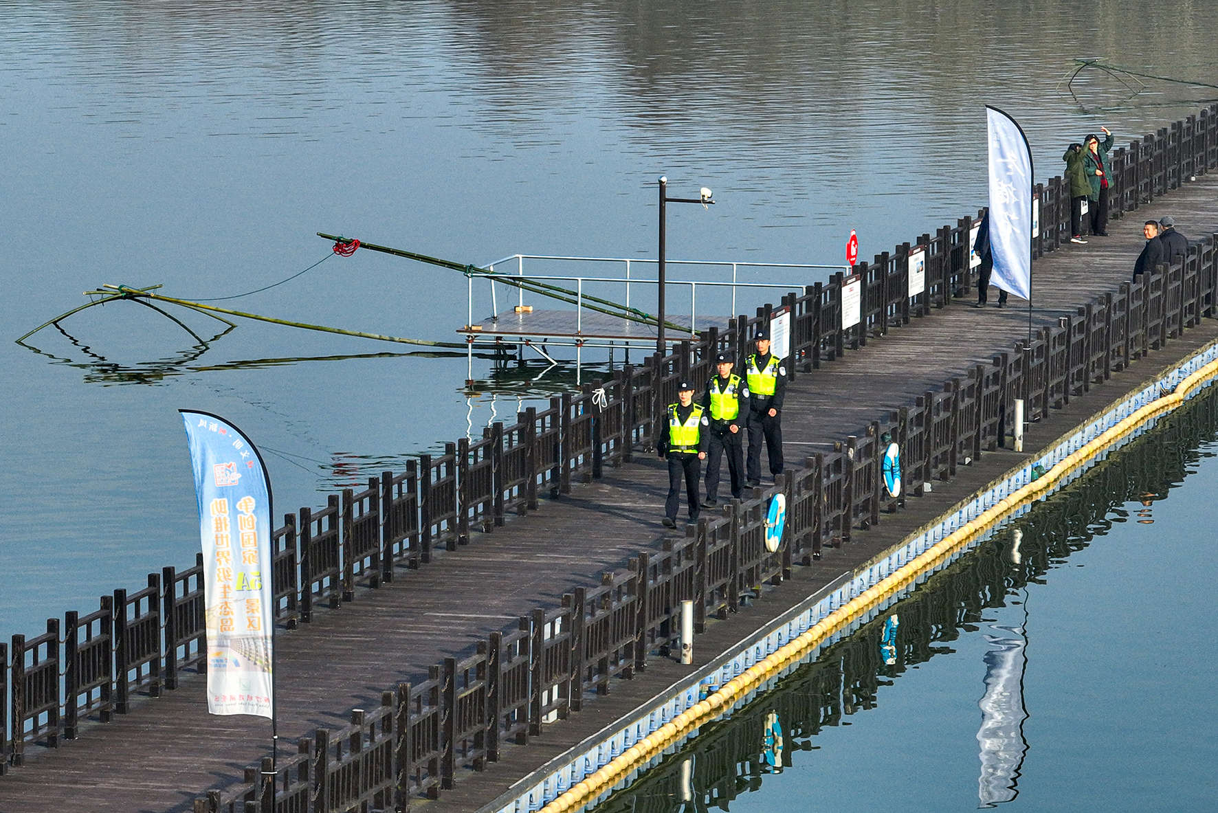 2023年12月31日,江蘇省宜興市公安局西渚派出所民警在龍獅大賽活動(dòng)現(xiàn)場(chǎng)執(zhí)勤。