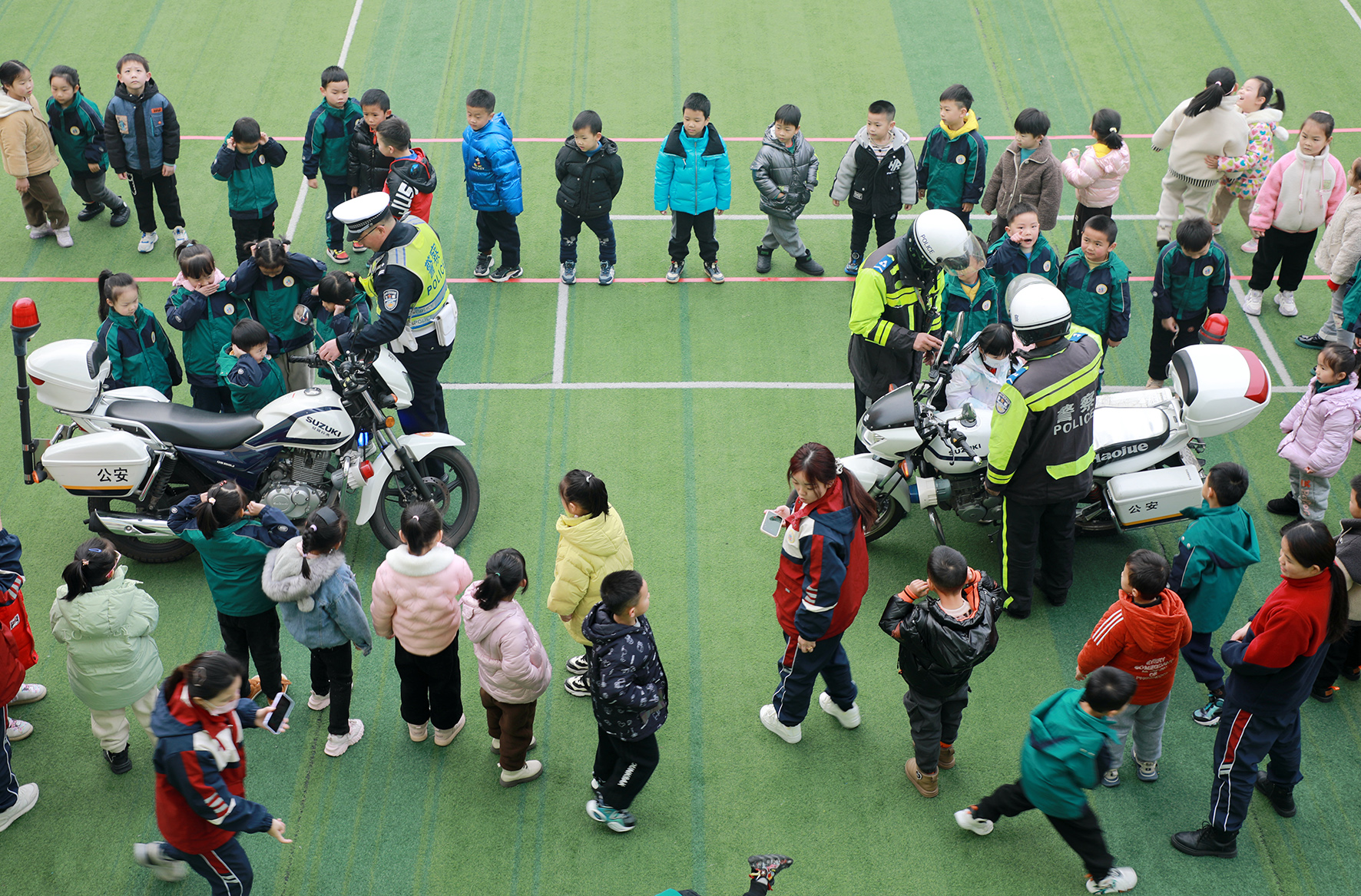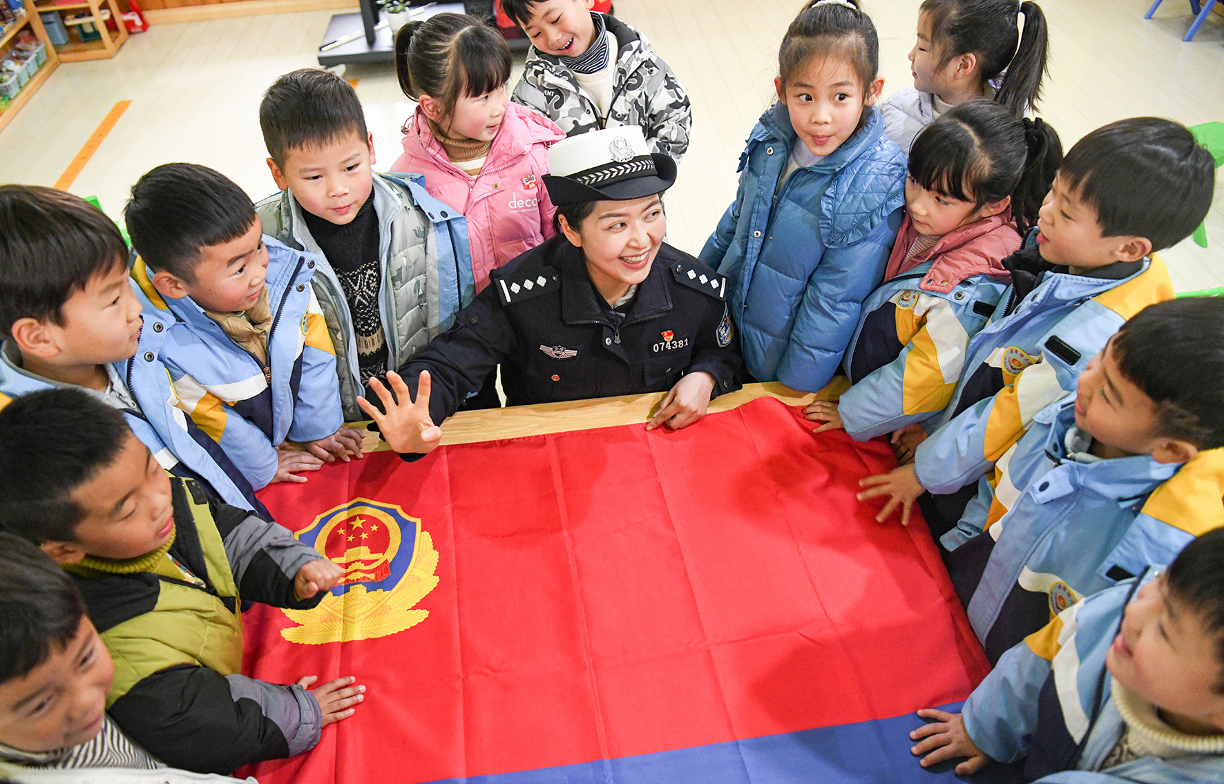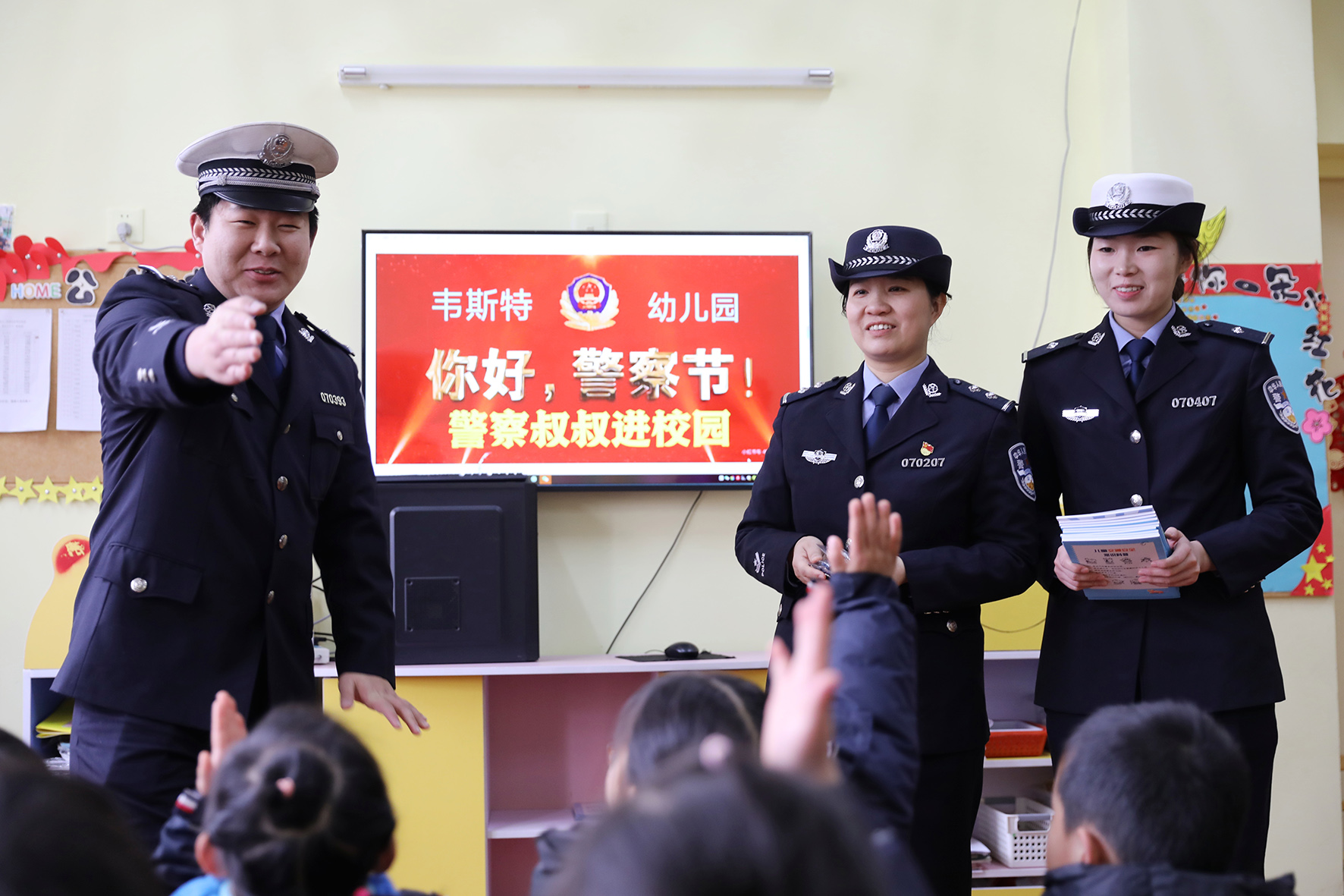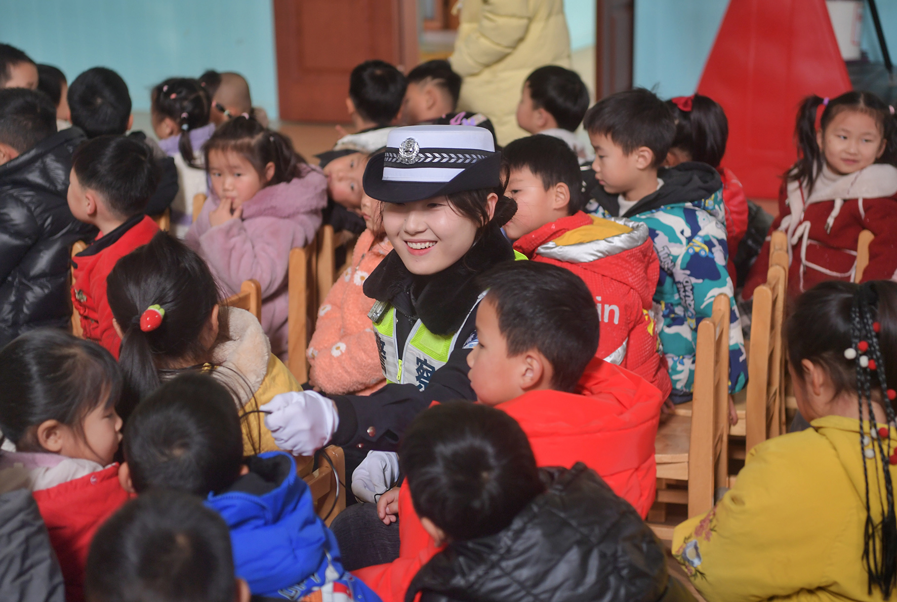 1月9日,安徽省巢湖市公安局交警大隊(duì)民警走進(jìn)轄區(qū)槐林鎮(zhèn)中心幼兒園,通過(guò)互動(dòng)方式給小朋友們講解道路交通安全知識(shí)。