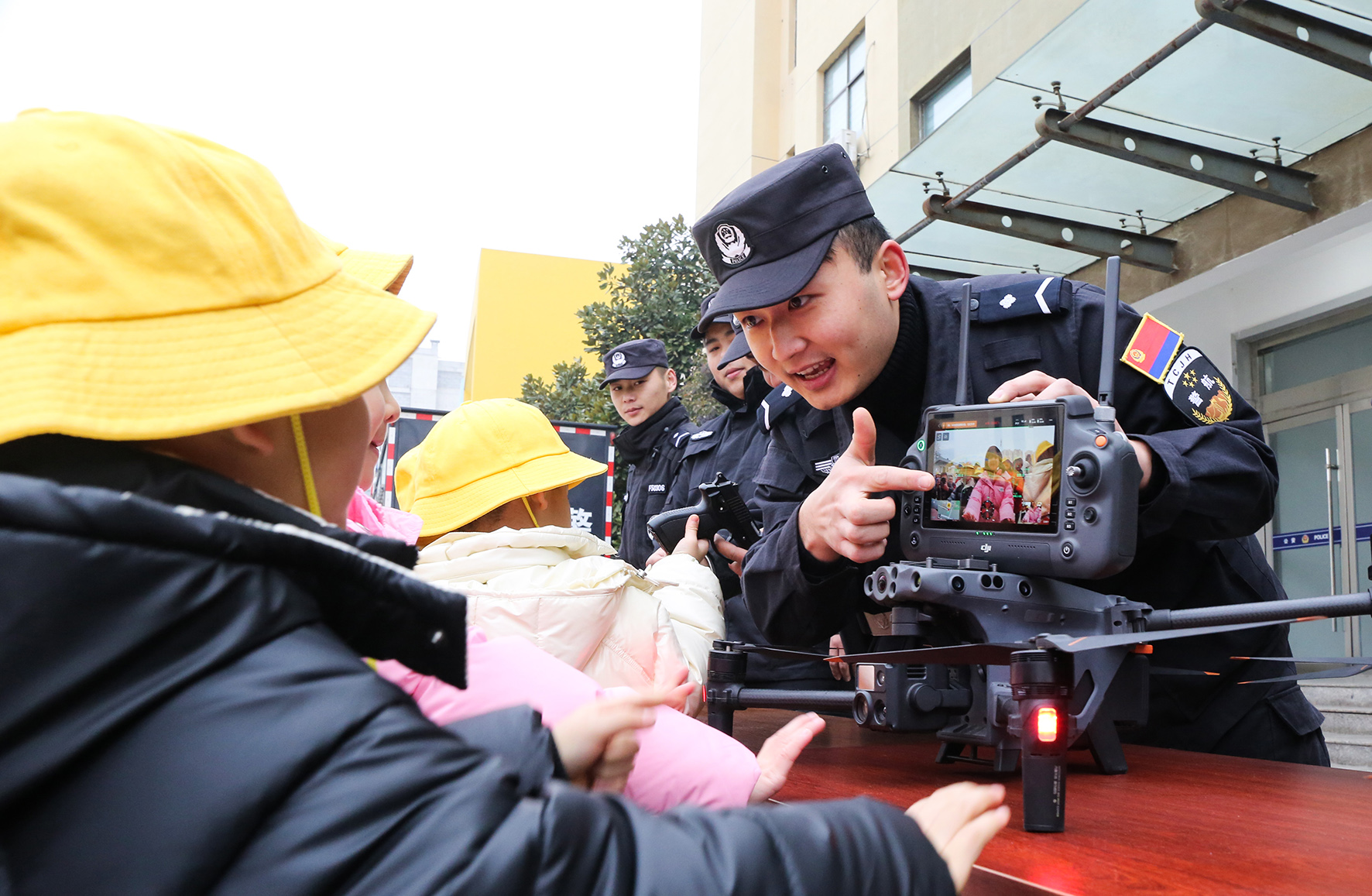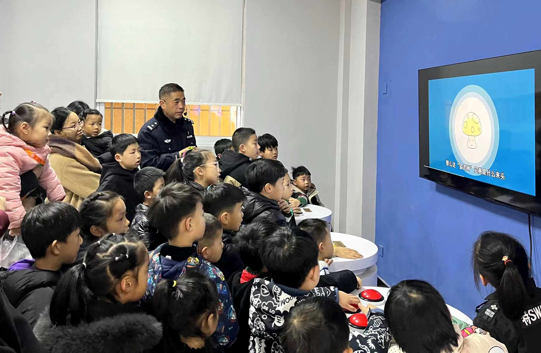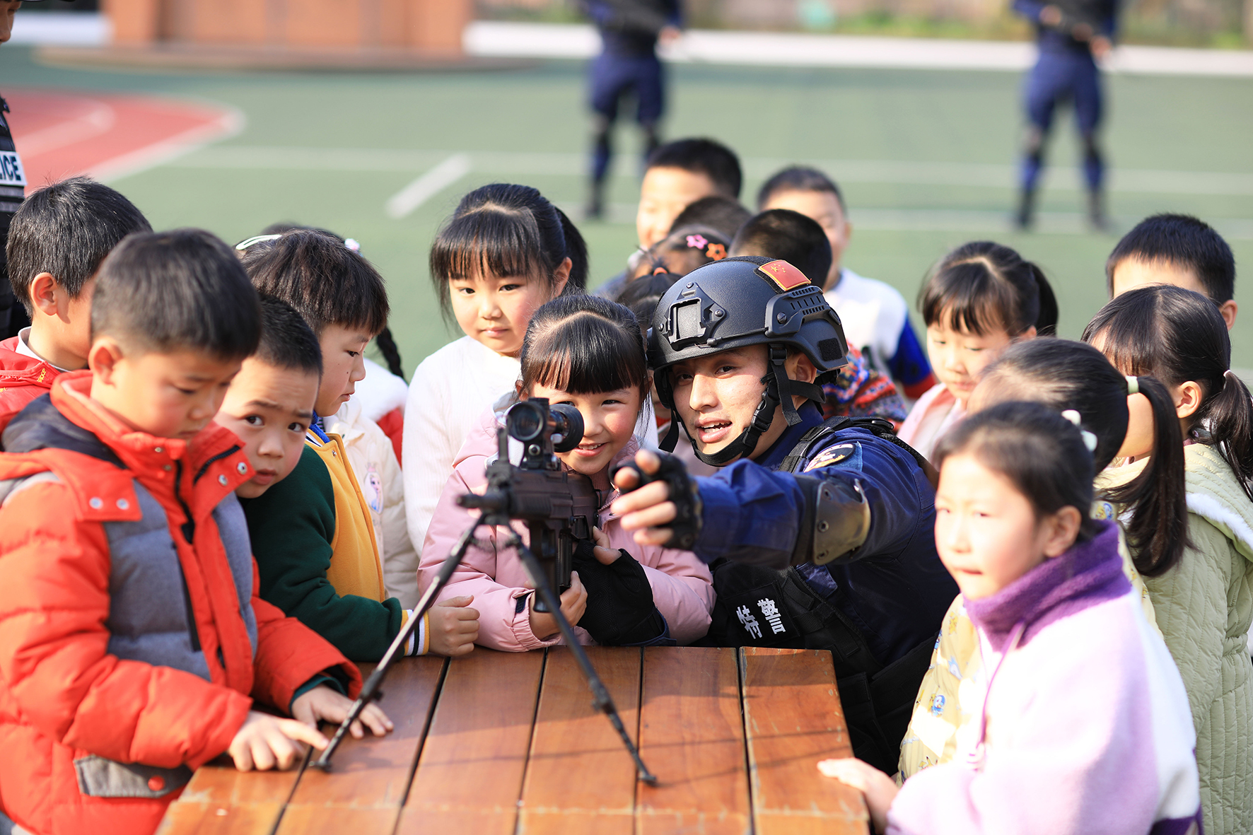 1月8日,貴州省赤水市公安局組織民警走進(jìn)千藝幼兒園,讓小朋友們“零距離”體驗(yàn)警用裝備。