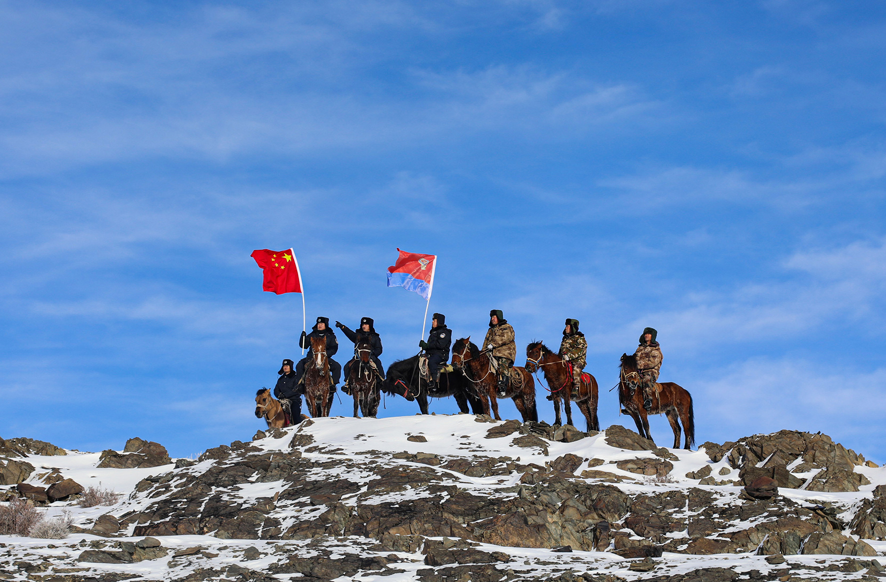 1月8日,新疆出入境邊防檢查總站阿勒泰邊境管理支隊(duì)查干郭勒邊境派出所移民管理警察與護(hù)邊員組建“馬背巡邏隊(duì)”,翻山越嶺深入邊境前沿開(kāi)展巡邊踏查,喜迎中國(guó)人民警察節(jié)的到來(lái)。
