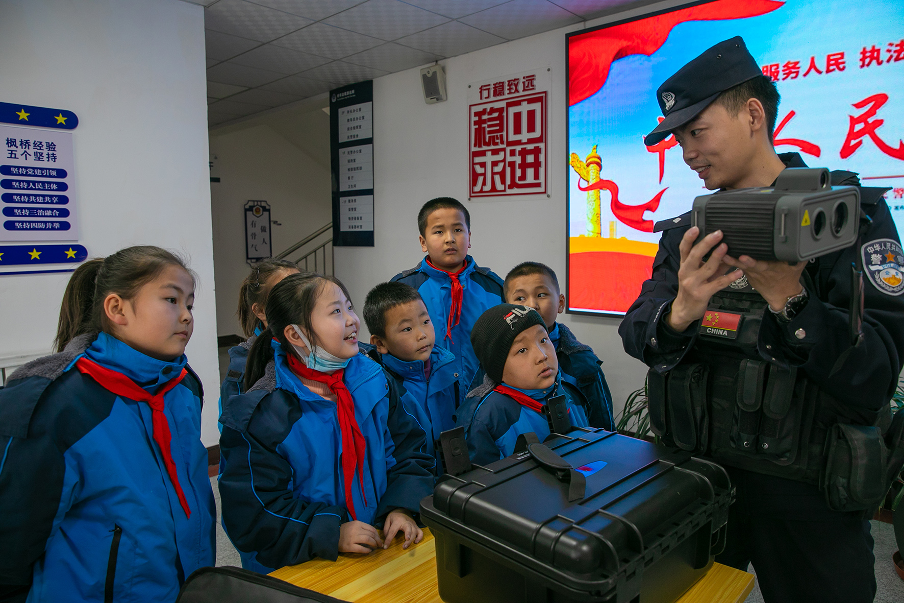 1月8日,新疆伊犁邊境管理支隊(duì)托布邊境派出所邀請(qǐng)駐地種羊場(chǎng)小學(xué)師生走進(jìn)警營(yíng),零距離感受警營(yíng)文化,體驗(yàn)警營(yíng)生活。