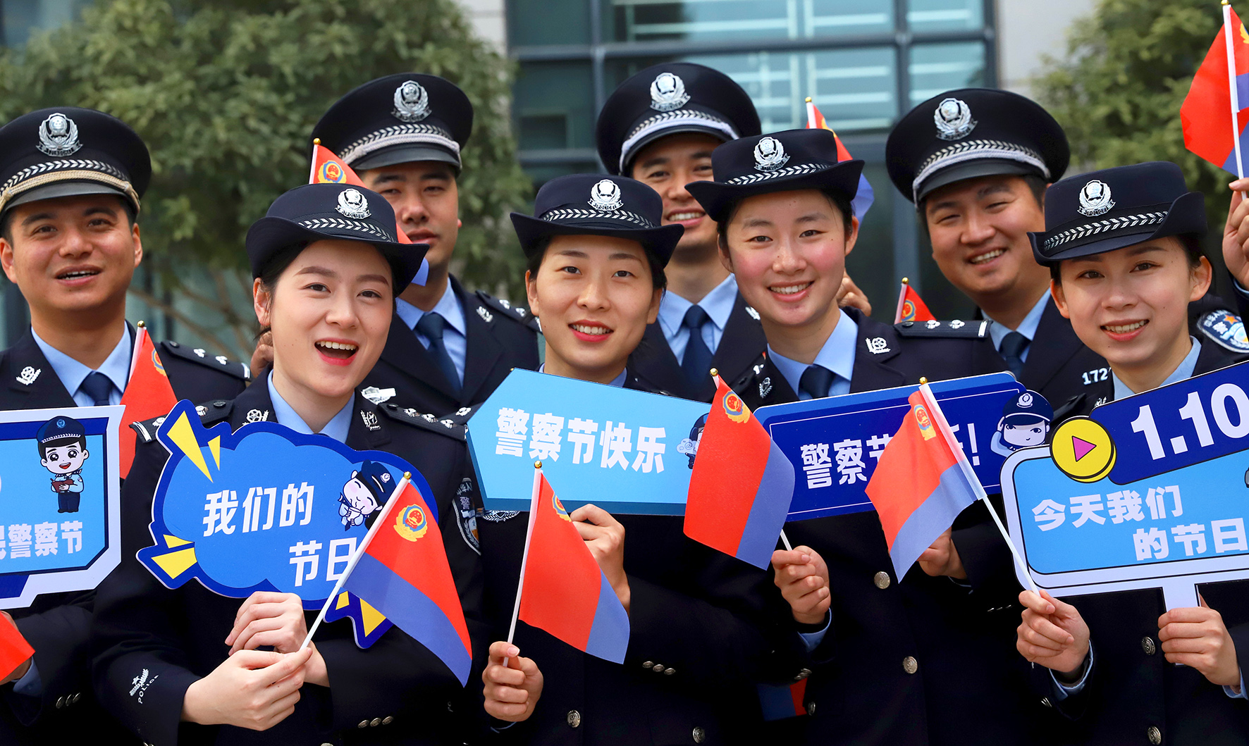 1月9日,浙江省臺(tái)州市公安局路橋分局組織民警開(kāi)展向警旗敬禮、與警旗合影活動(dòng)。