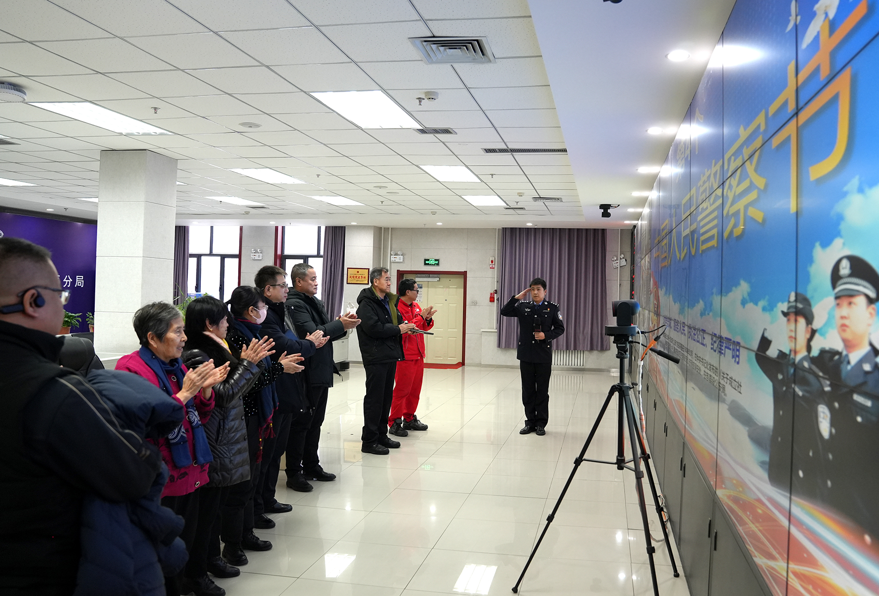 1月8日,新疆克拉瑪依市公安局白堿灘區(qū)分局開(kāi)展警營(yíng)開(kāi)放日活動(dòng),邀請(qǐng)20名義務(wù)監(jiān)督員走進(jìn)警營(yíng)體驗(yàn)參觀。