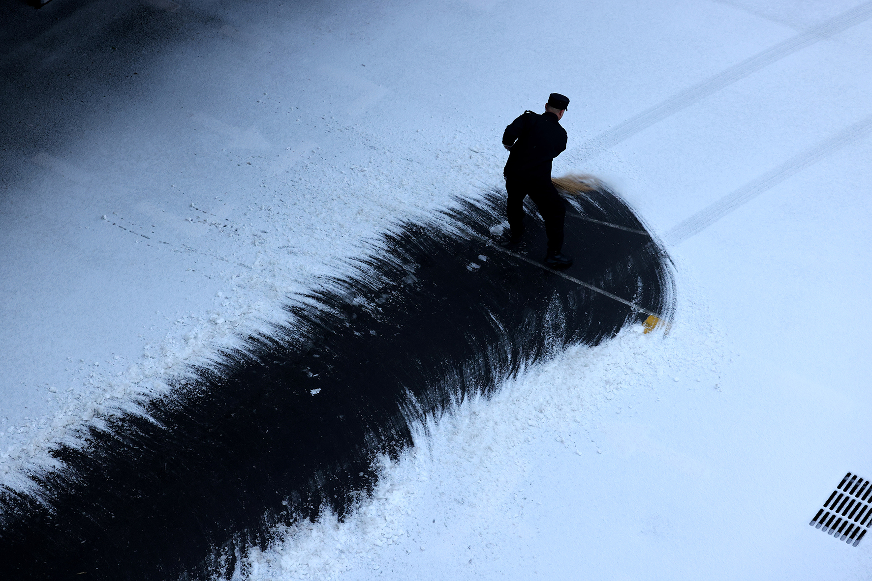 1月16日,在山東省棗莊市市中區(qū)人民法院,一名干警在清掃大院內(nèi)的積雪。當(dāng)日,棗莊市普降瑞雪。