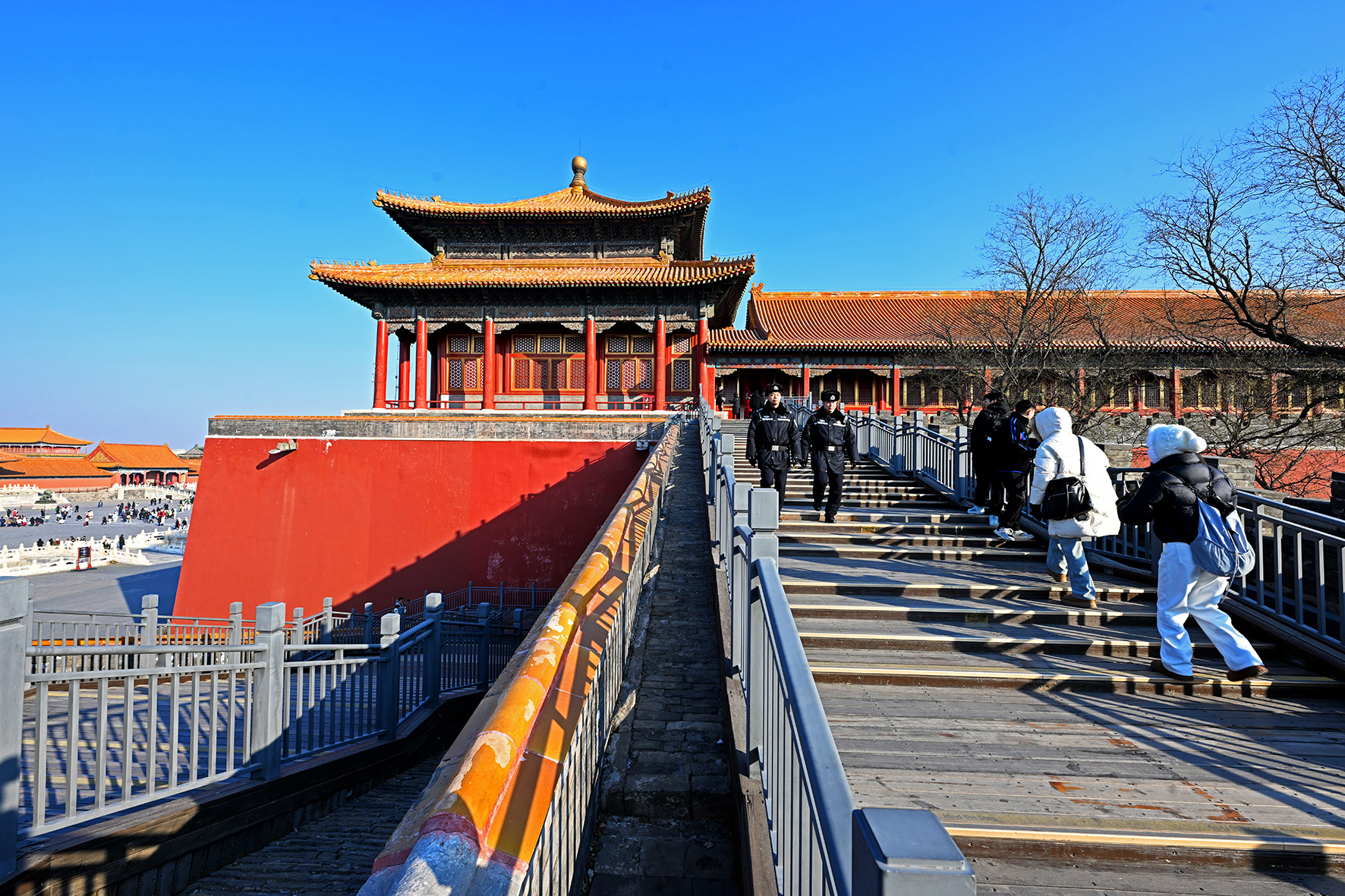 民警在午門西雁翅樓進(jìn)行巡查。午門東西雁翅樓是舉辦各種文化展覽活動的場所。