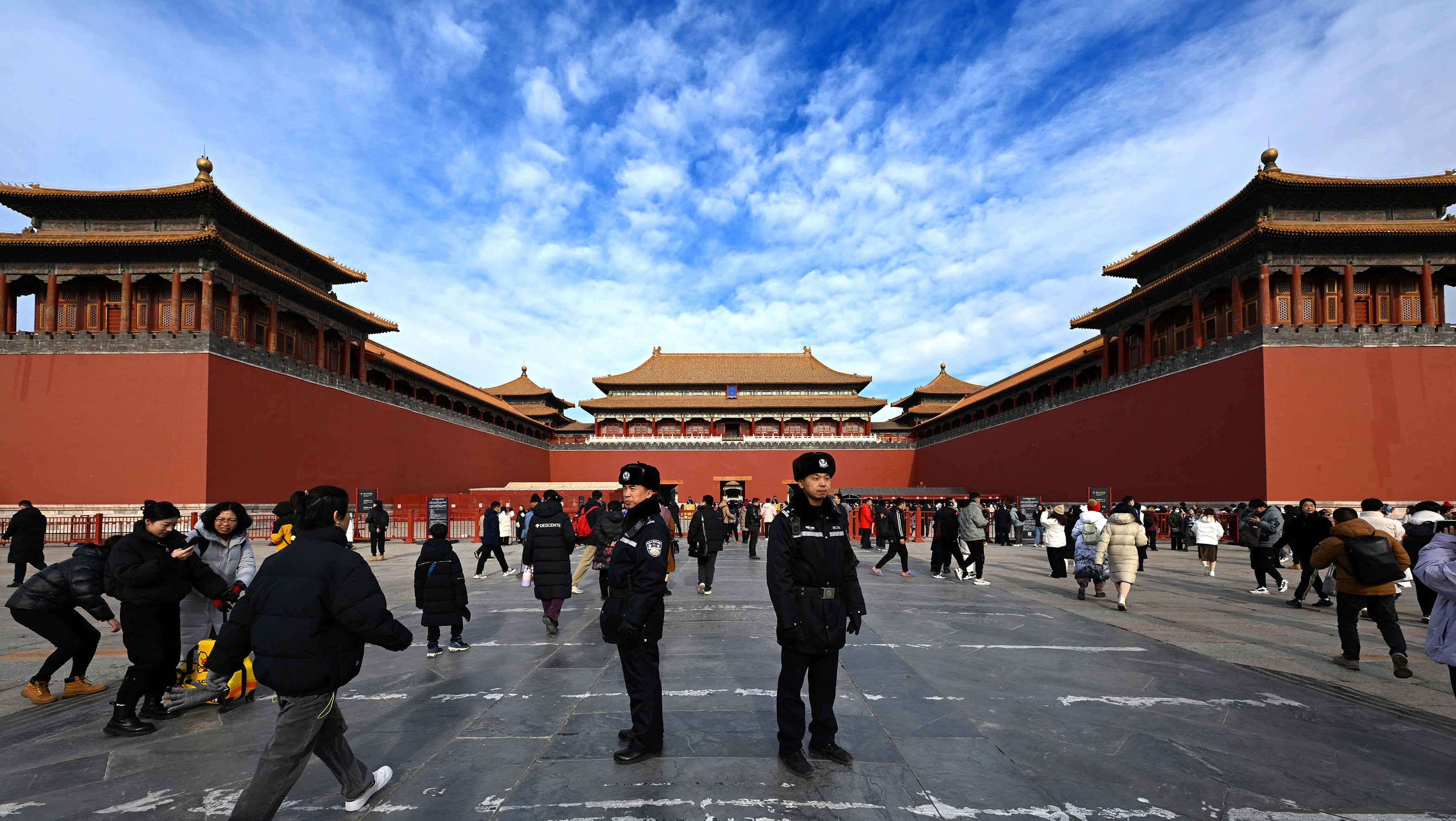 民警在金水橋一側(cè)的熙和門附近巡邏。故宮內(nèi)的各個門廊、殿宇以及角落都是民警日常巡邏的區(qū)域。